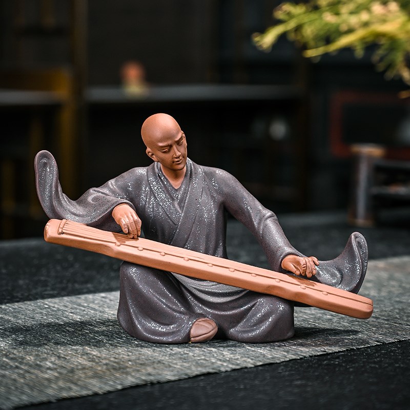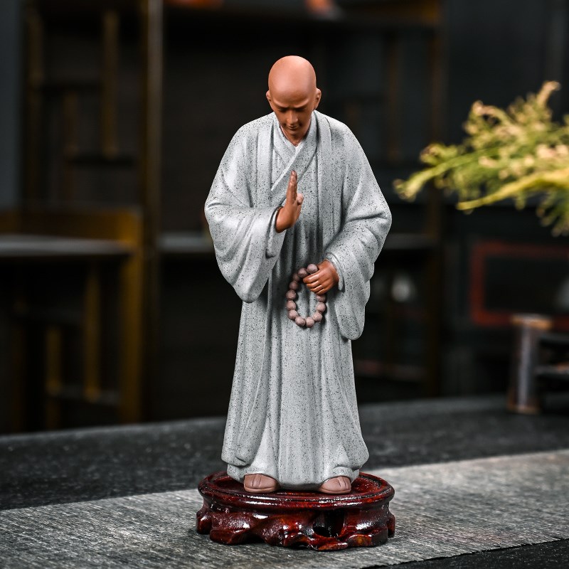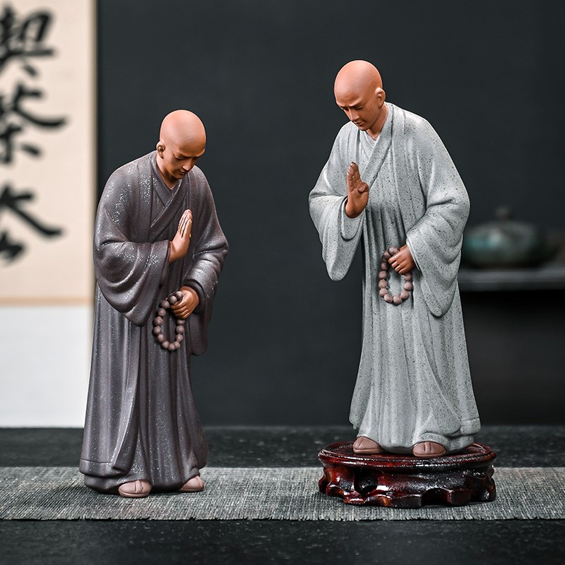 紫砂禅意小和尚摆j件中式家居客厅书房茶室茶几人物鱼缸造景装饰