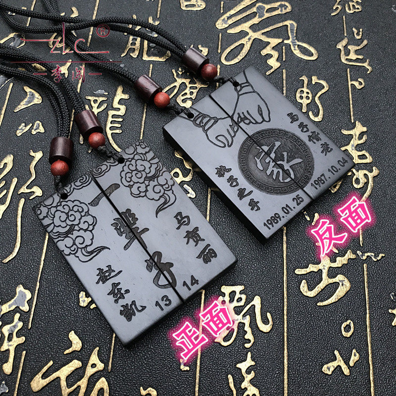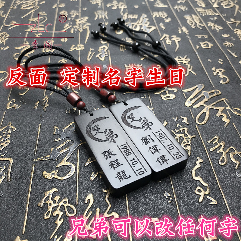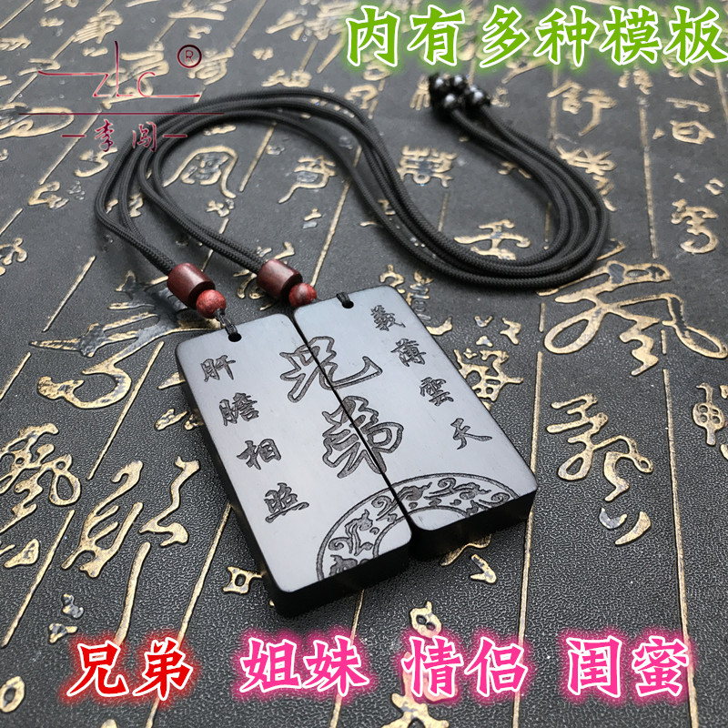 檀木兄弟项链定制刻字两人情义做名字拼图男女吊坠情侣简约款木牌