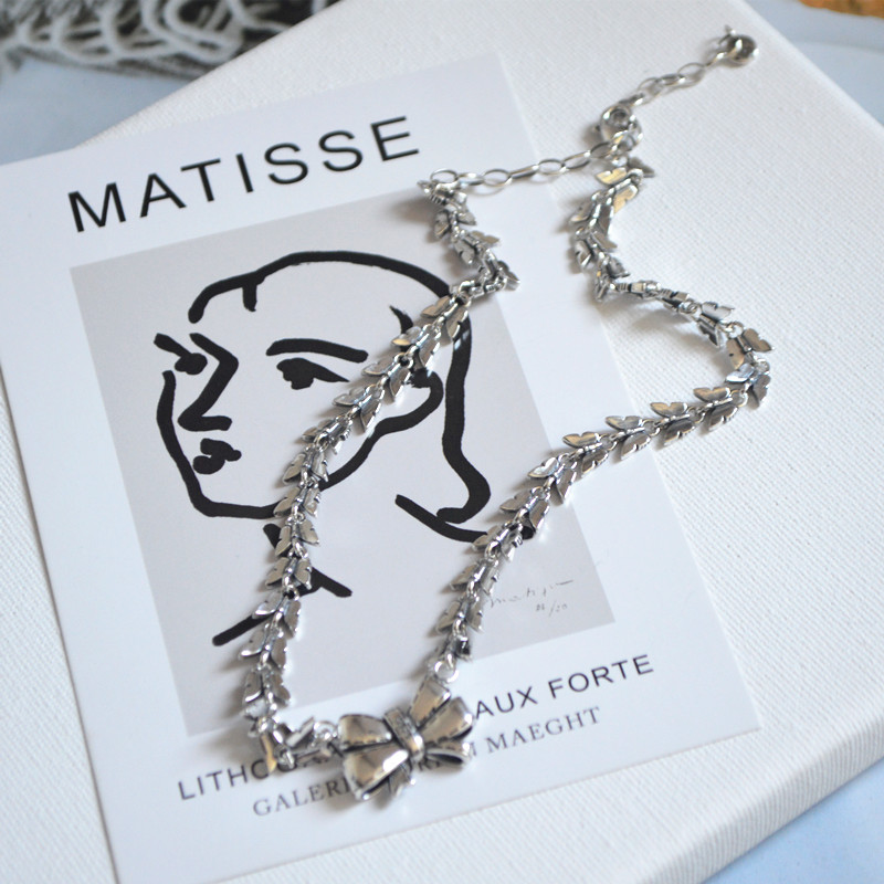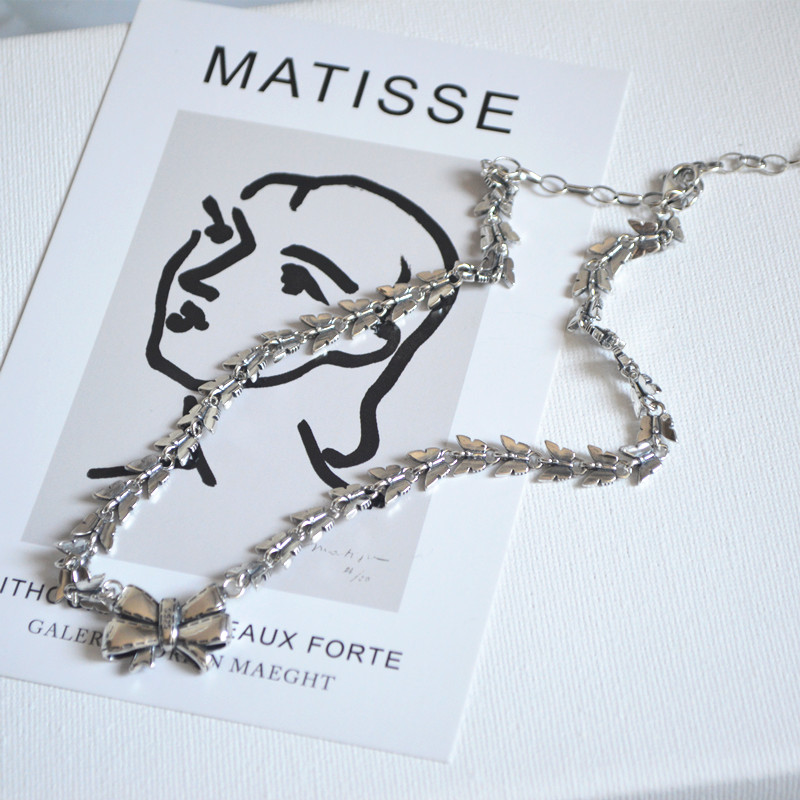 S925银段带蝴蝶结项链女锁骨链轻奢高级感配饰2025年新款颈链小众