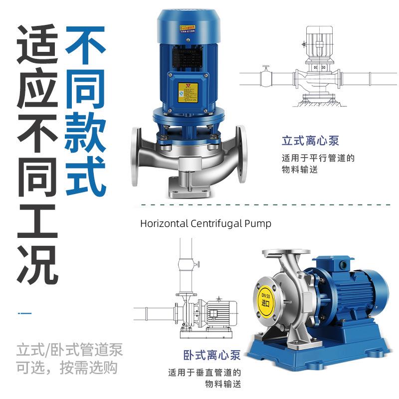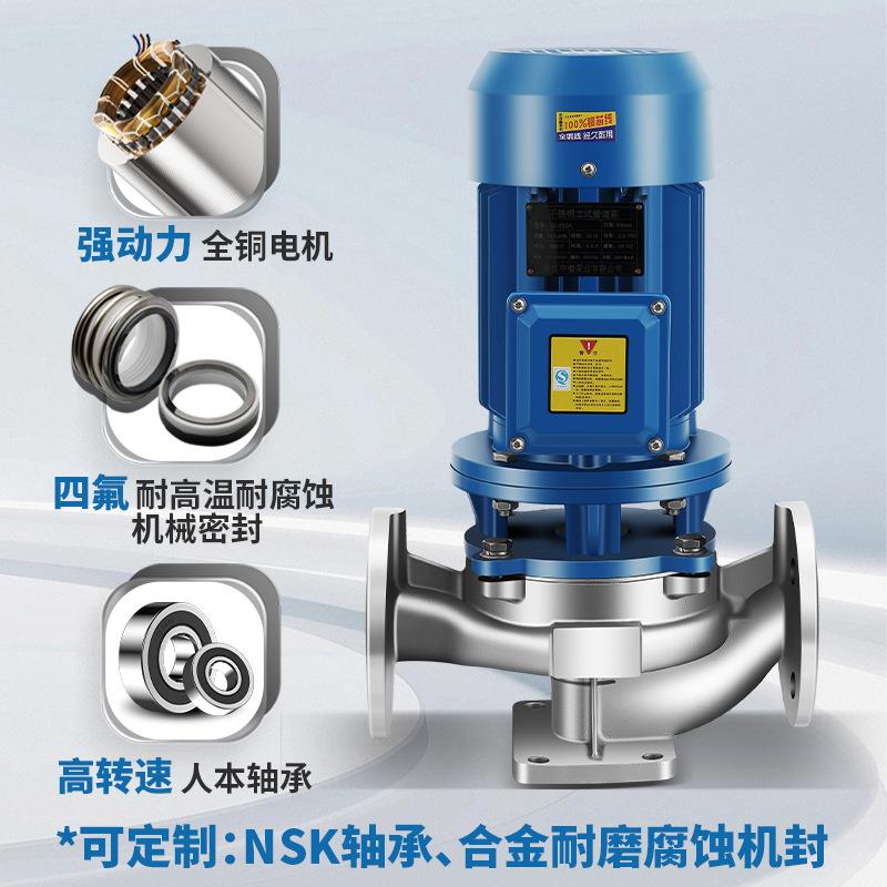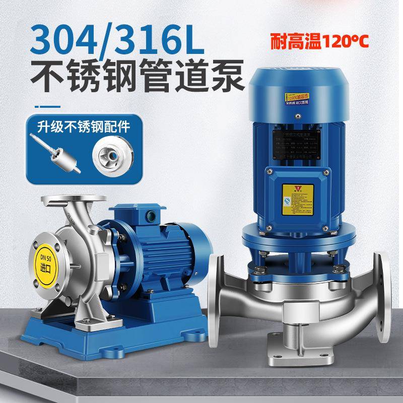 304不锈钢立式管道离心泵380V耐酸碱腐蚀316L工业卧式增压循环泵