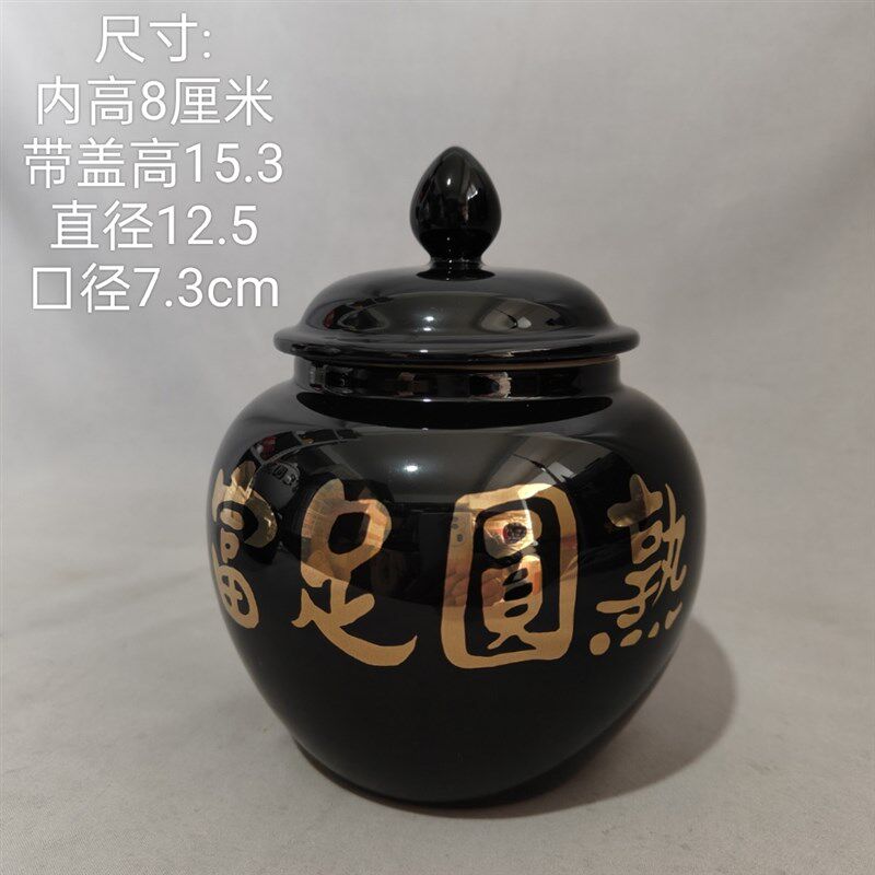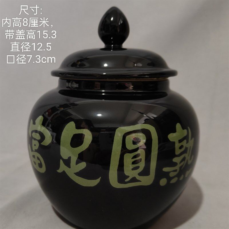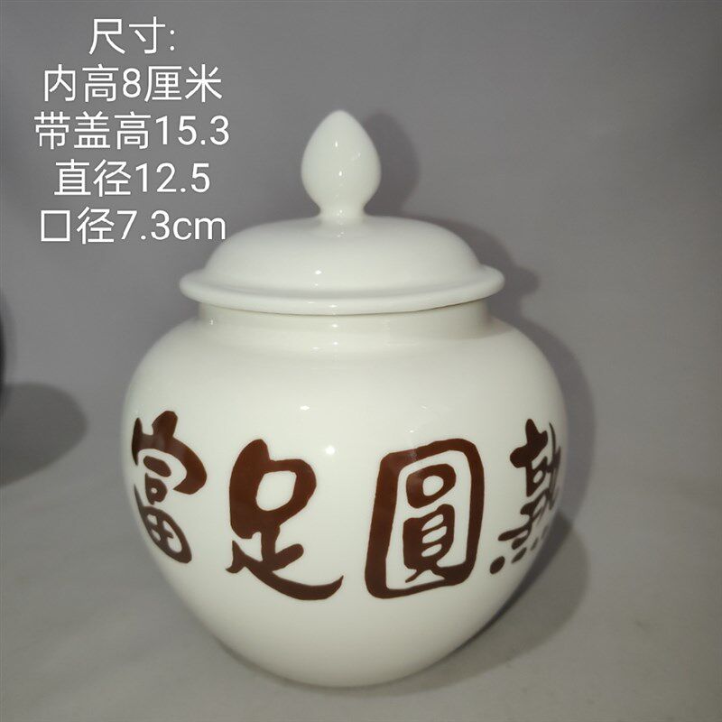 小号700ml富足圆熟白色罐咖啡色字白咖易经聚宝盆 道学陶瓷罐摆件