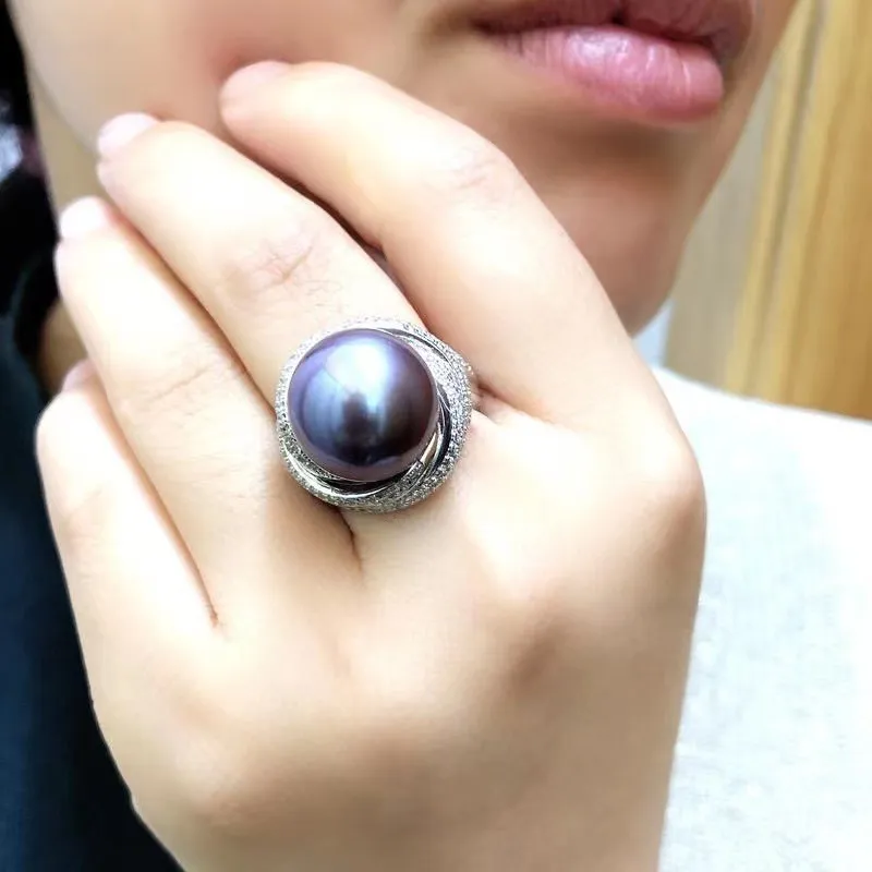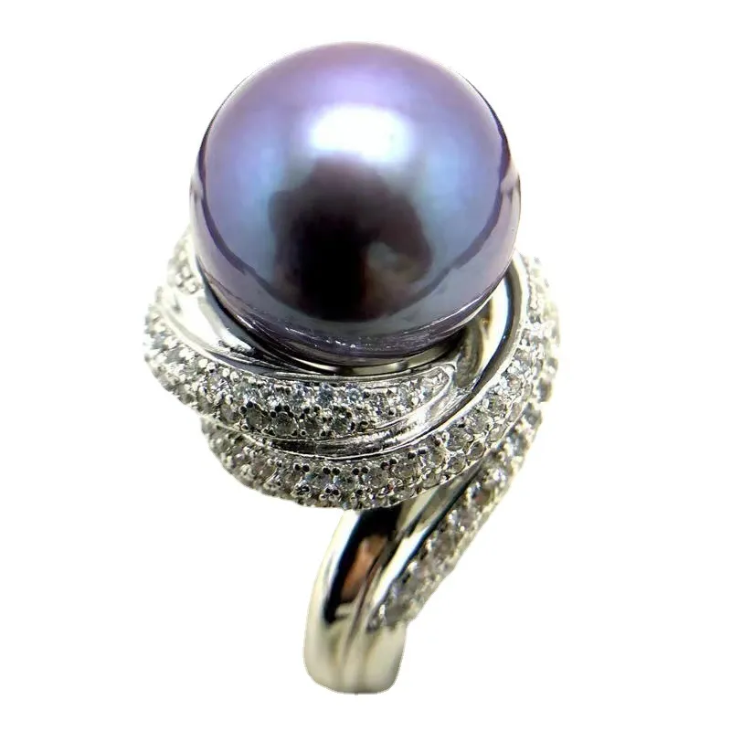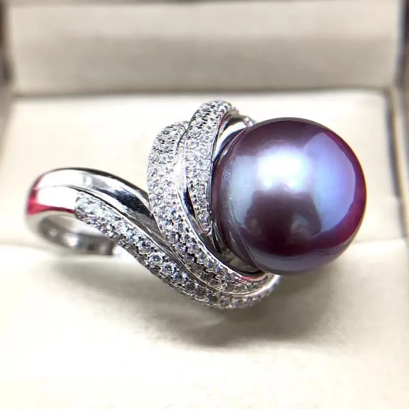 大颗粒10-12mm天然淡水珍珠戒指 正圆爱迪生妖紫色深紫纯银强光女