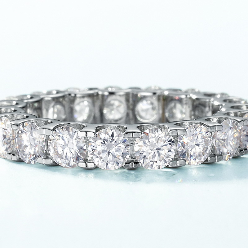 轻奢设计满钻排镶莫桑石戒指女S925银镀18K金璀璨彩宝宝石钻戒风