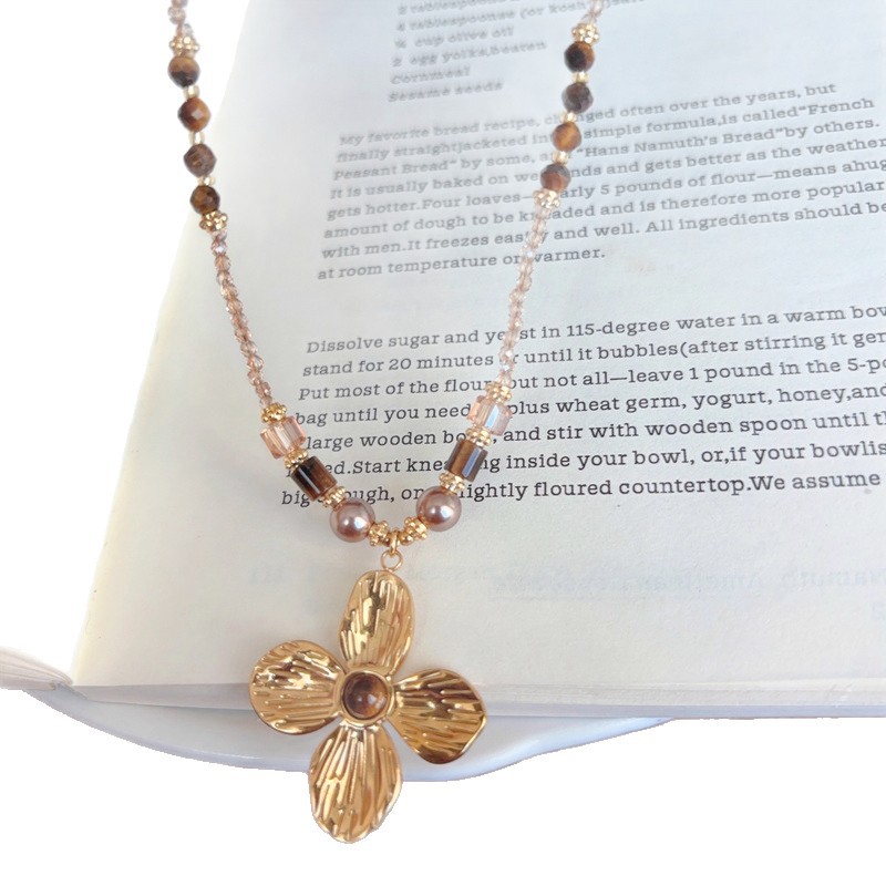 美拉德风钛钢吊坠虎眼石串珠项链秋冬配饰女毛衣链长款轻奢高级感
