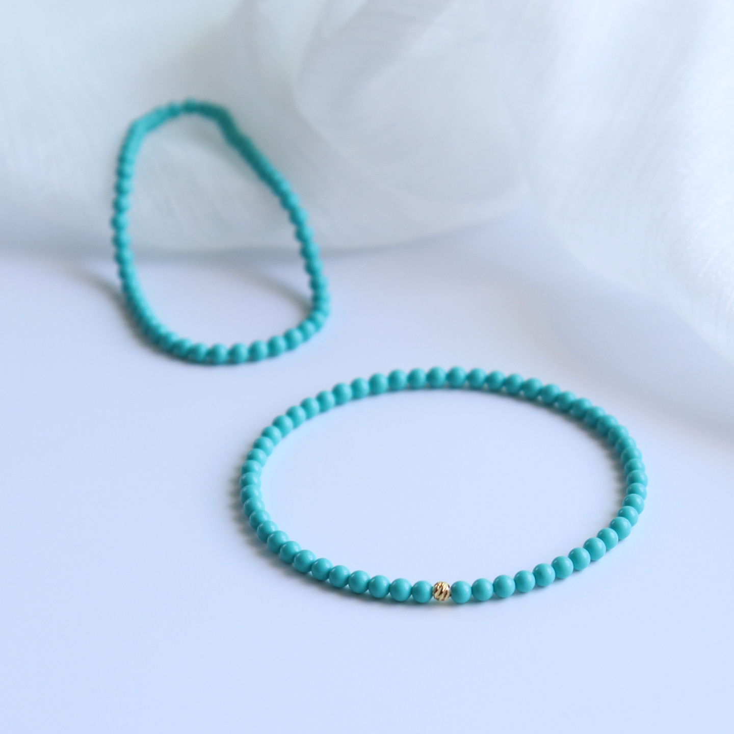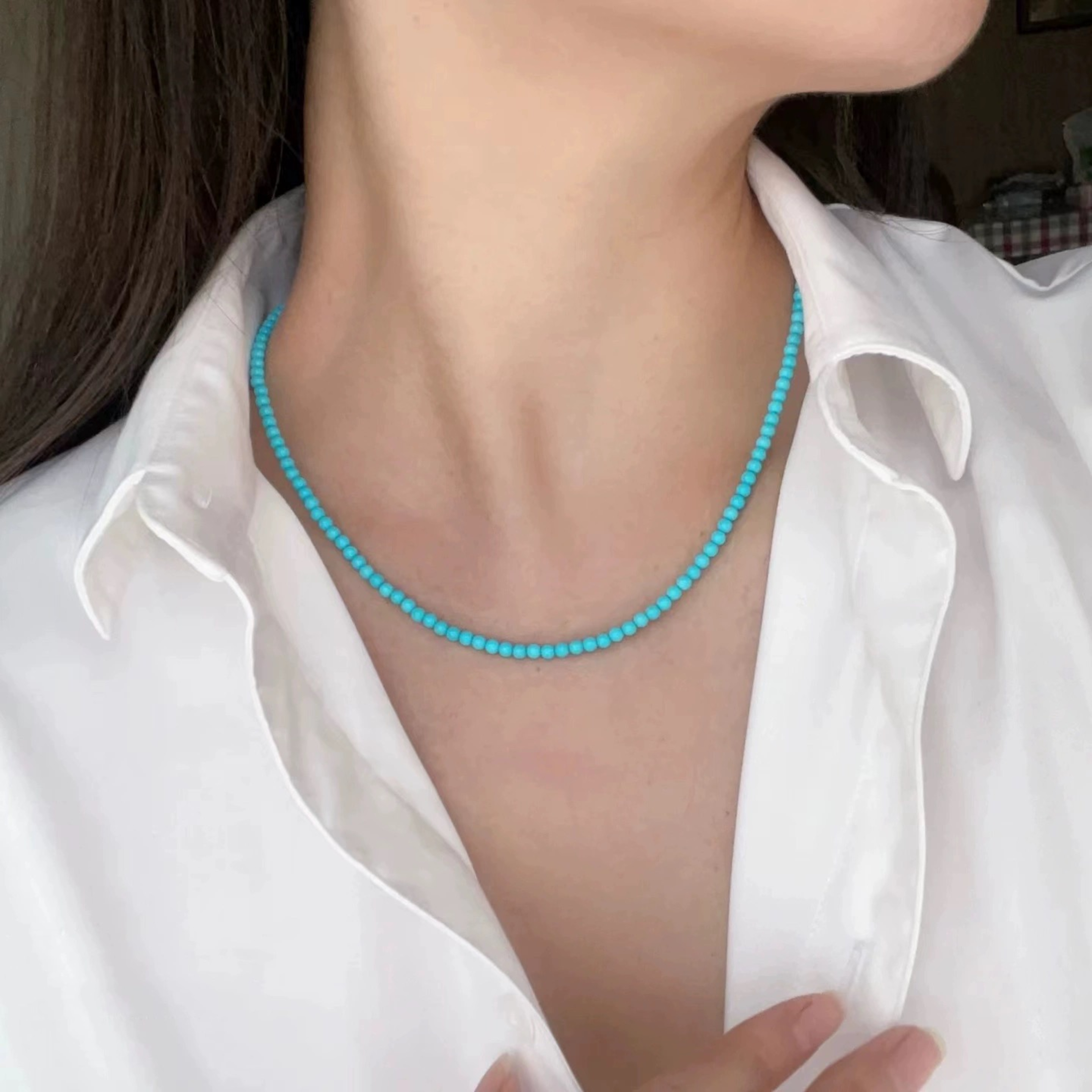 Charon绿松石手串女款蓝绿色极细小米珠手链转运珠饰品首饰礼物
