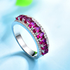 卓蝶珠宝纯银镀18K白金仿镶嵌蓝宝石戒指红宝石排戒群镶厚实女戒