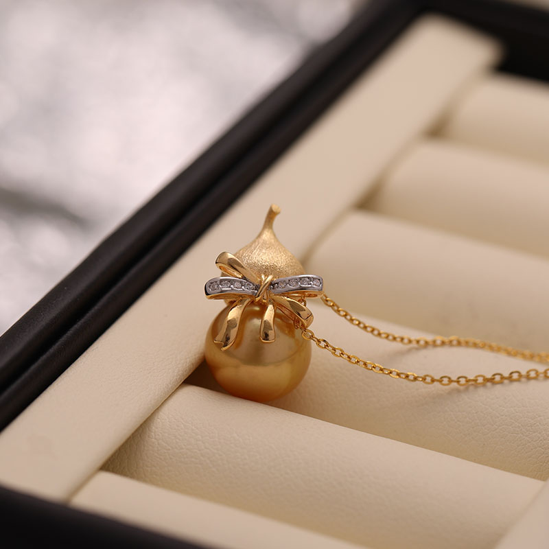 DIY珍珠配件s925纯银精致麻纱分色葫芦吊坠项坠项链坠配10-13mm