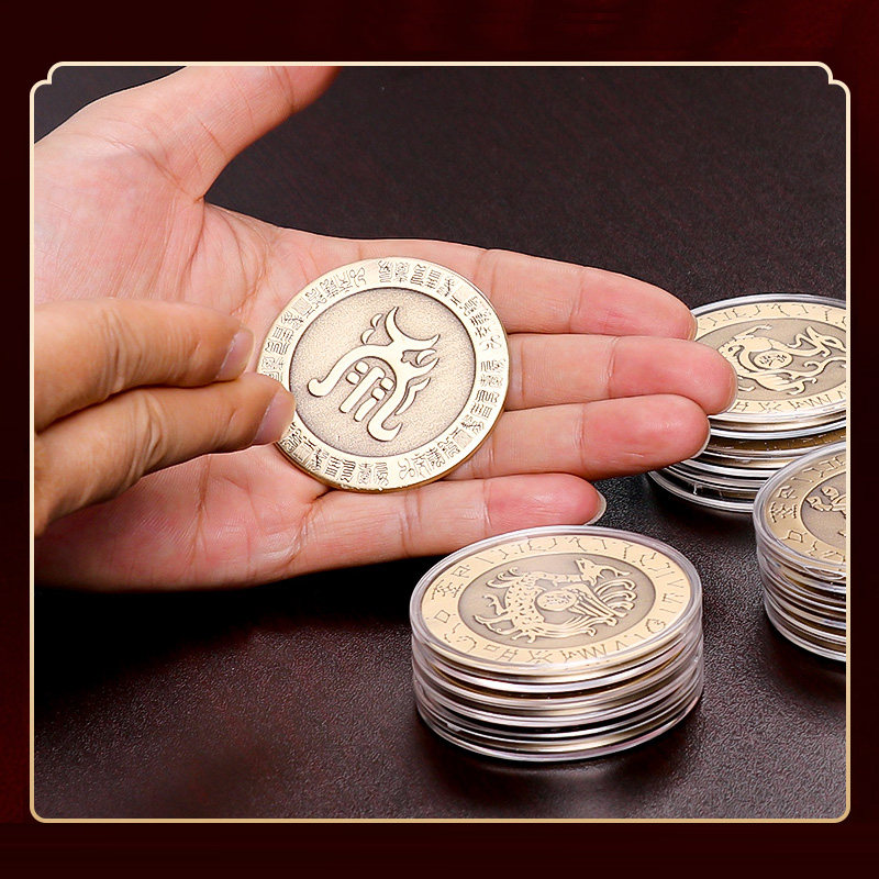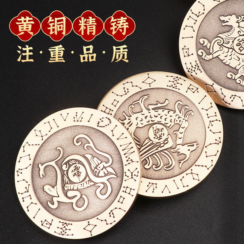 道家纯黄铜四大神兽铜钱摆件房屋缺补角青龙白虎朱雀玄武麒麟平安