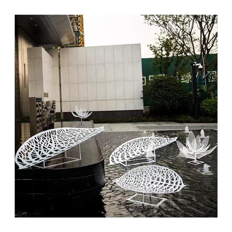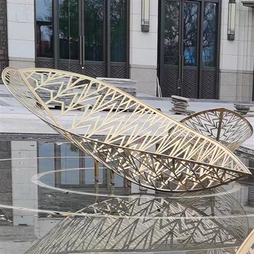立体镂空镜面金属叶子摆件不锈钢树叶雕塑水景售楼处楼盘枫叶装饰