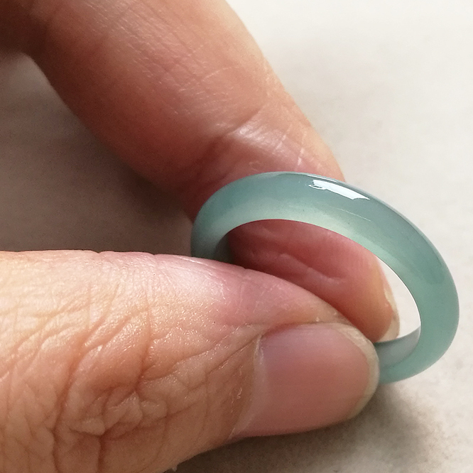 高冰种天然翡翠A货蓝水指环细款满绿玉戒指尾戒玉石情侣对戒男女
