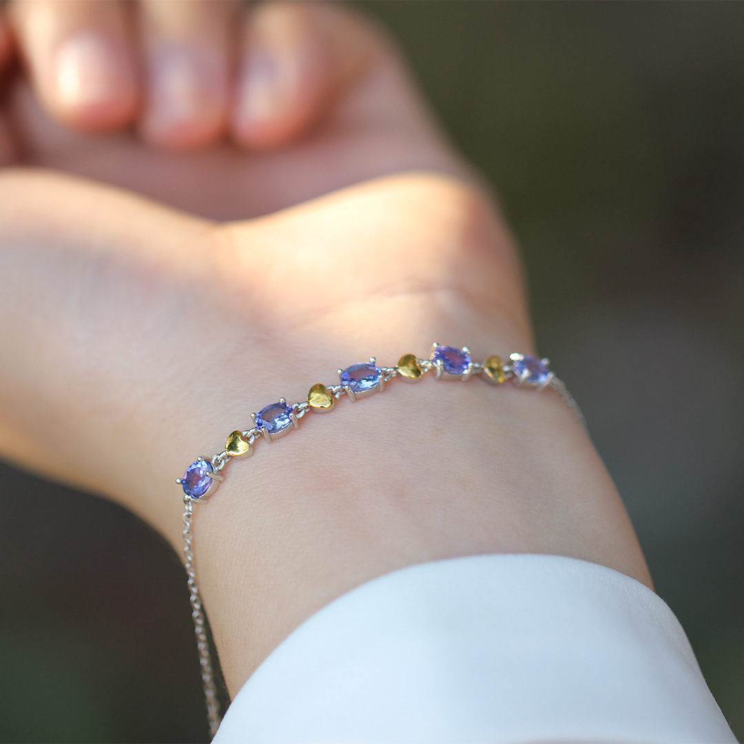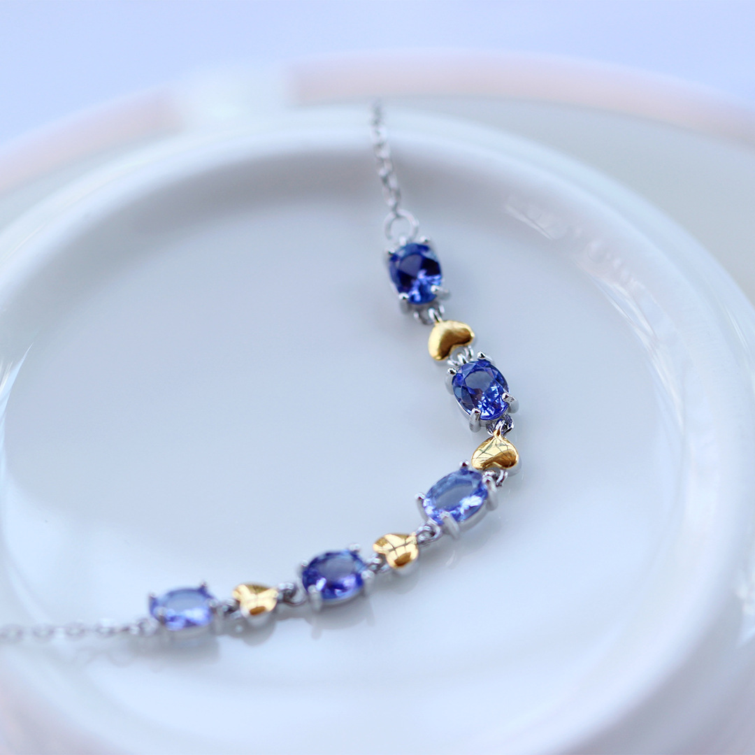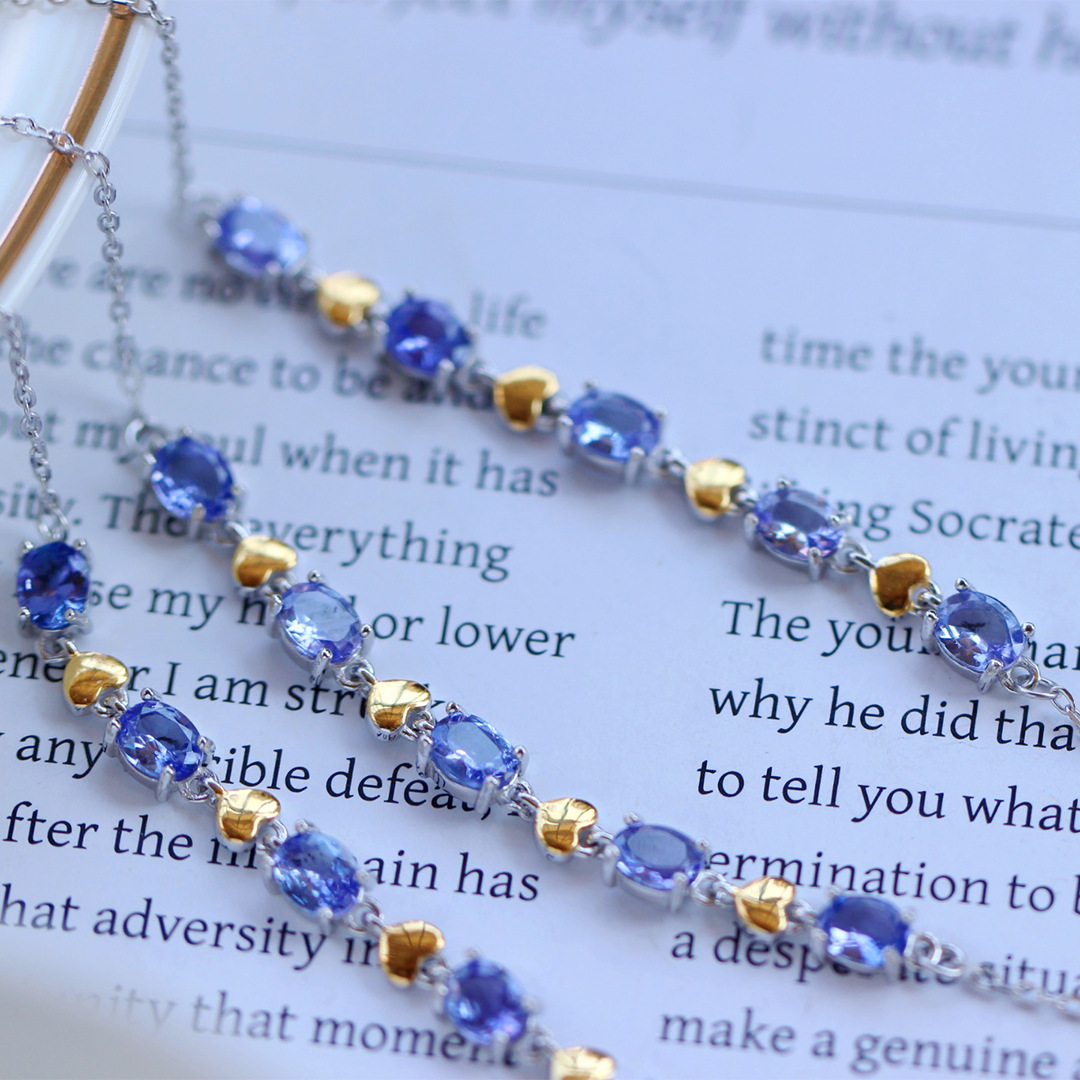 天然坦桑石银手链s925纯银蓝色宝石手链轻奢小众精致手链直播供应