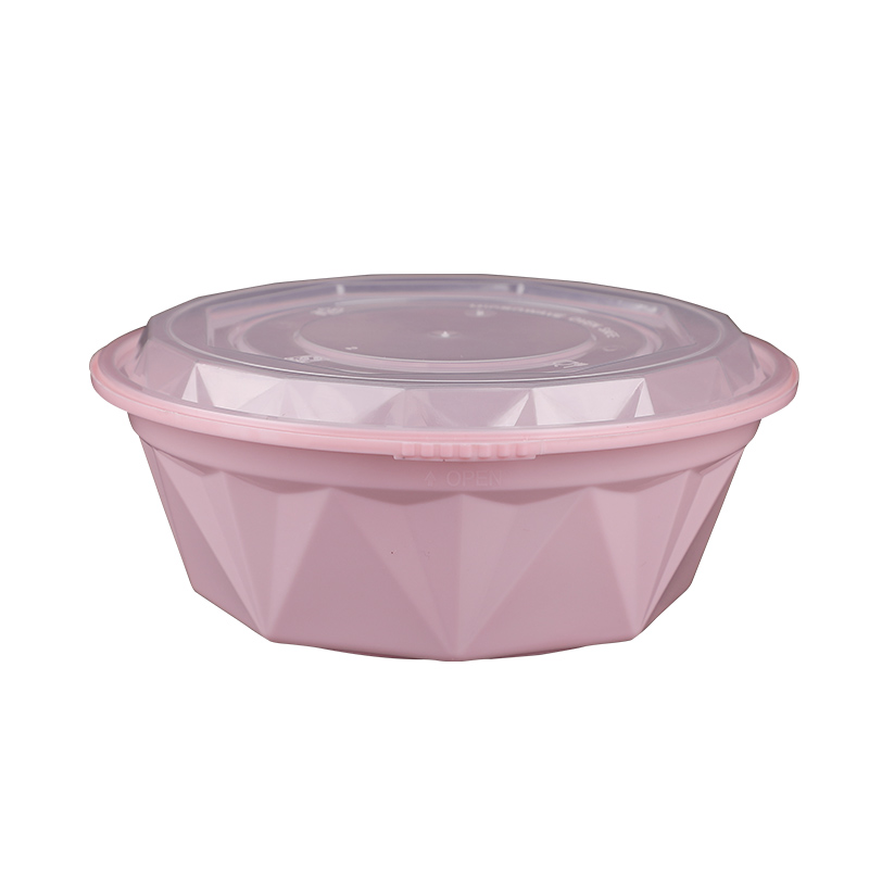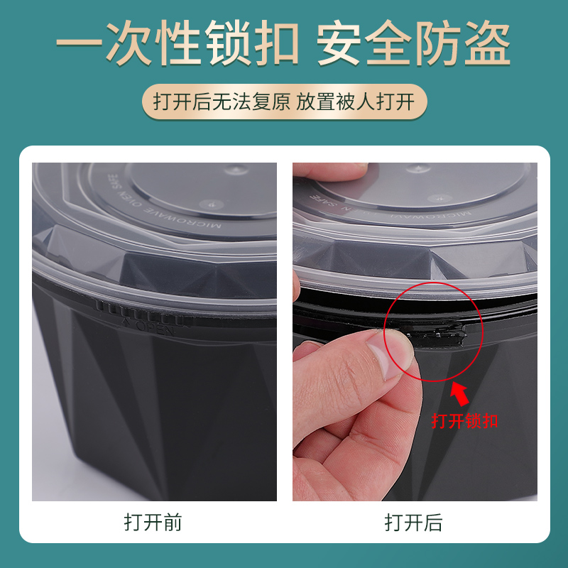 圆形一次性餐盒塑料打包盒加厚带盖可微波加热锁扣餐盒砖石碗汤碗