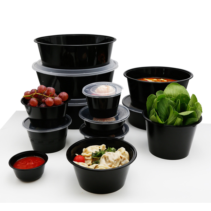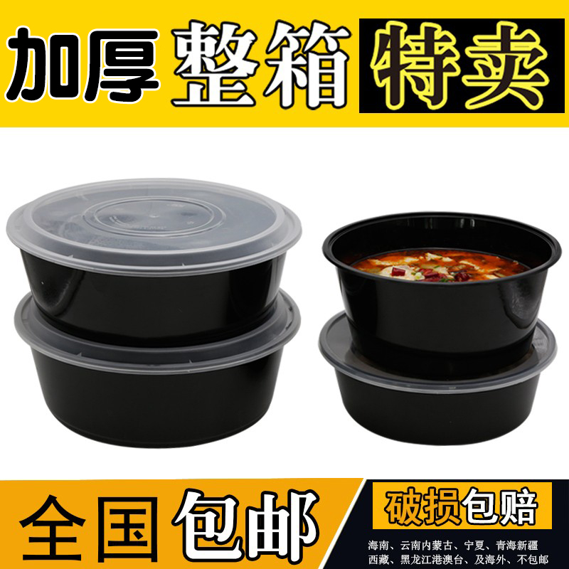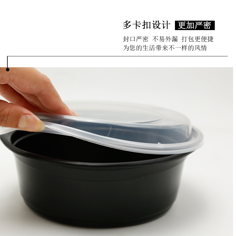 一次性塑料圆形打包盒黑色美式加厚外卖碗面碗带盖整箱批发