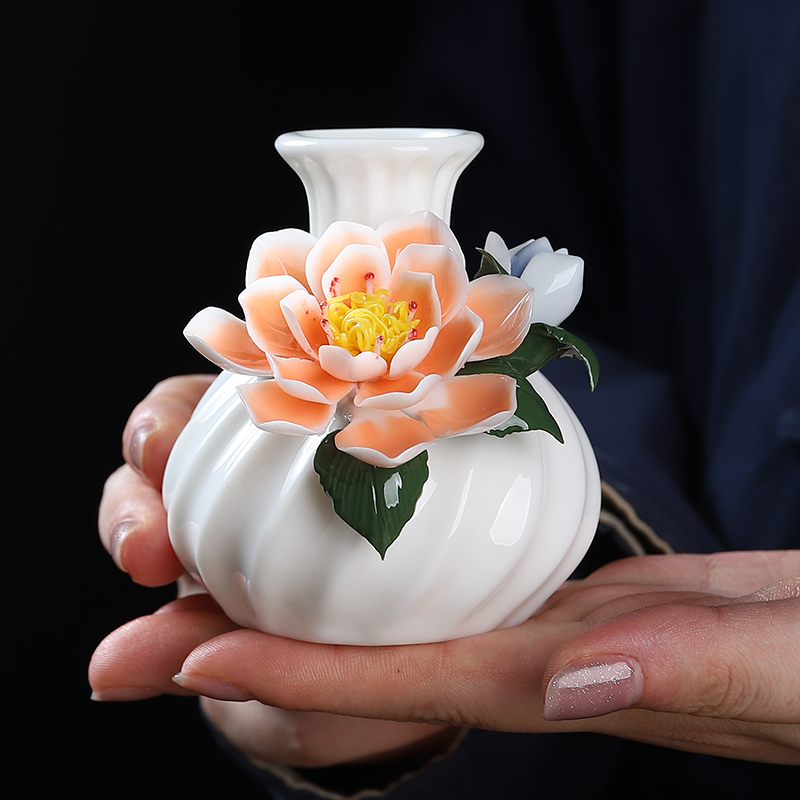 东方泥土陶瓷手工瓷花花瓶摆件办公室书房茶室桌面小花器插花家用