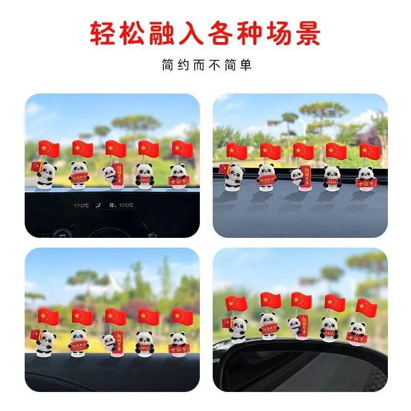 2025新款可爱摇头红旗国庆熊猫汽车摆件车载中控台导航饰品装饰用