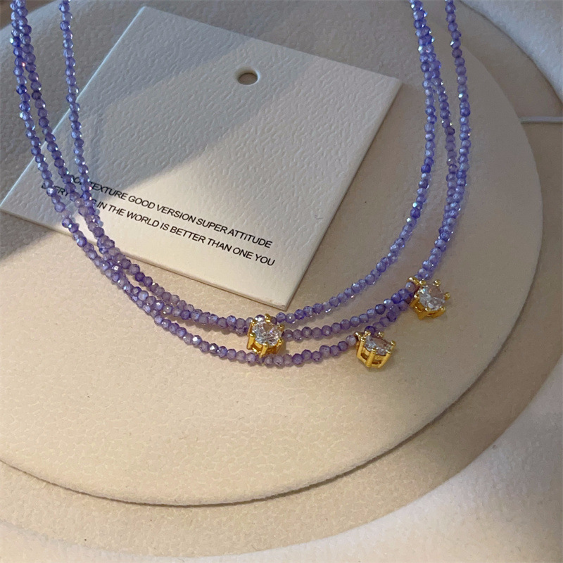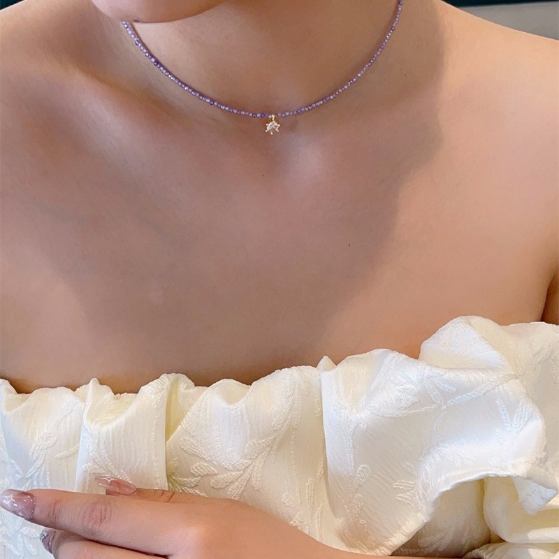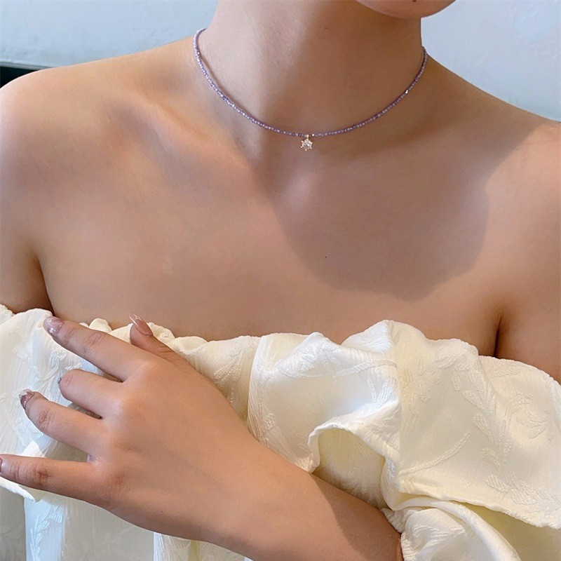 薰衣草紫色系满天星锆石项链法式天鹅颈百搭水晶项链精致锁骨链