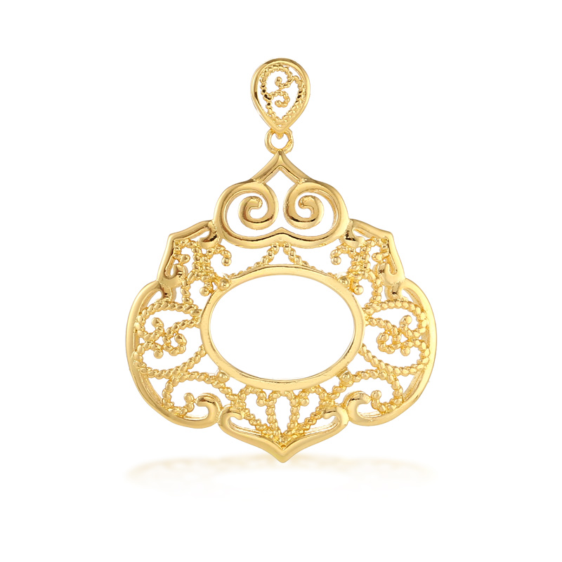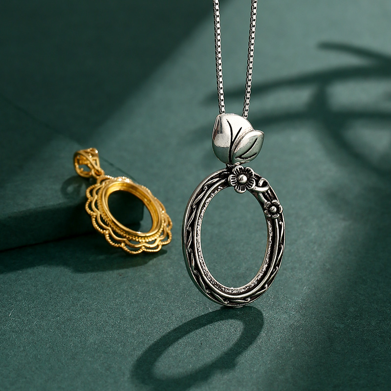 复古霸气简约吊坠空托男女古法沙金镶嵌蜜蜡琥珀翡翠项坠空托配件
