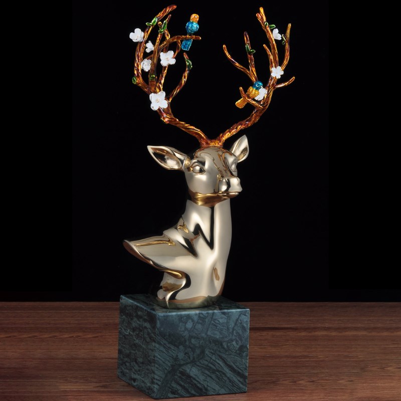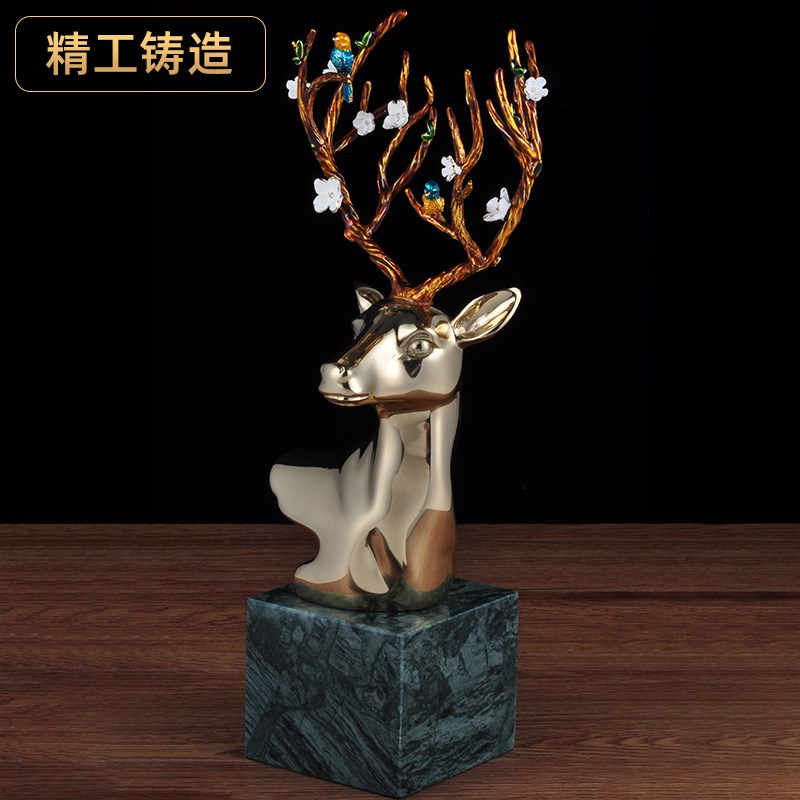彩铜鹿头摆件一鹿有你创意鹿工艺品家居客厅电视柜Y书房装饰品