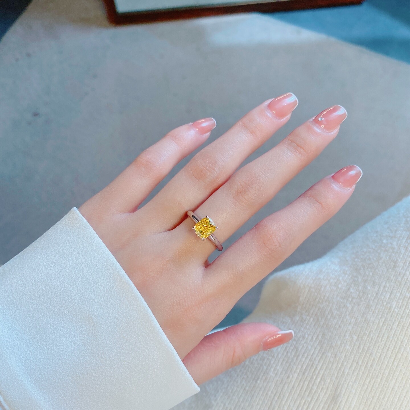 1.25克拉枕形小黄钻单钻戒指女925银镀金简约轻奢2EX切工小肥方糖