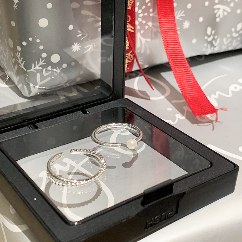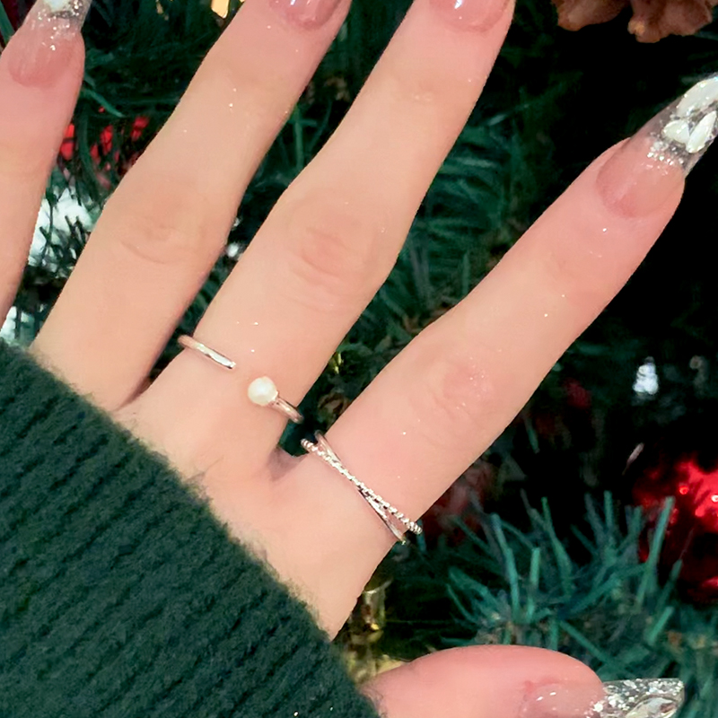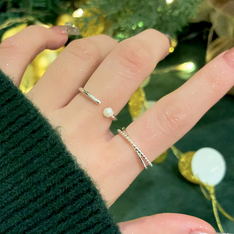 极简珍珠戒指女小众设计开口素圈戒指女时尚个性对戒素戒尾戒指环