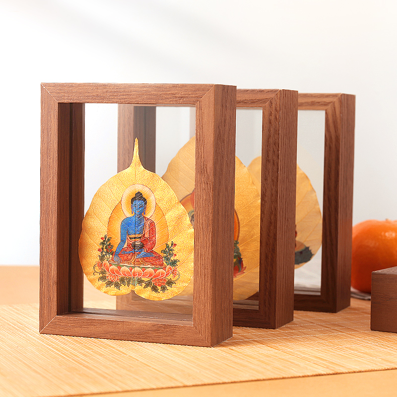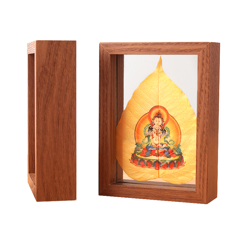 木质彩绘菩提叶摆件生肖本命黄财神树叶标本可定图高透玻璃相框