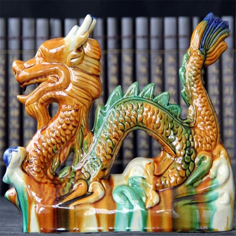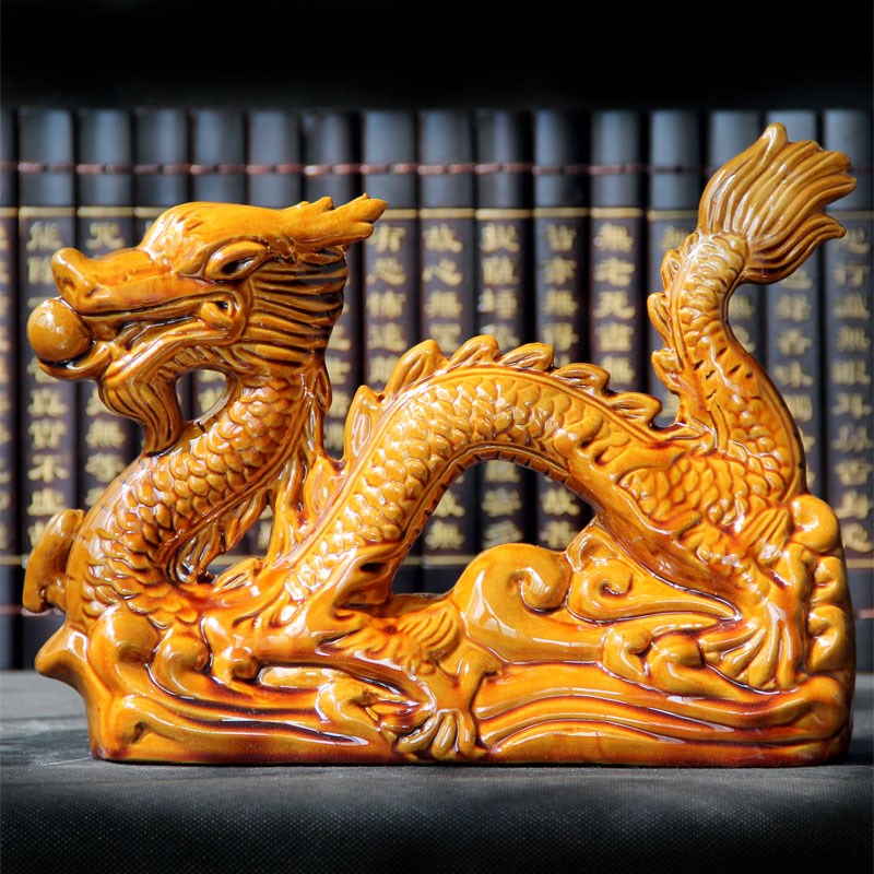 陶瓷龙摆件龙家居桌面摆件办公送礼瑞兽招财补缺角青龙摆设