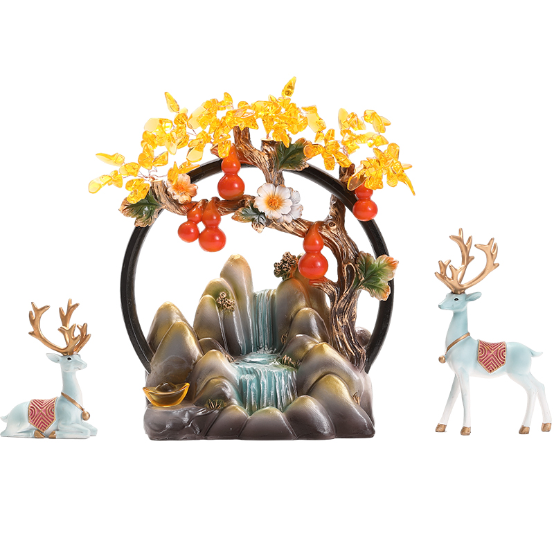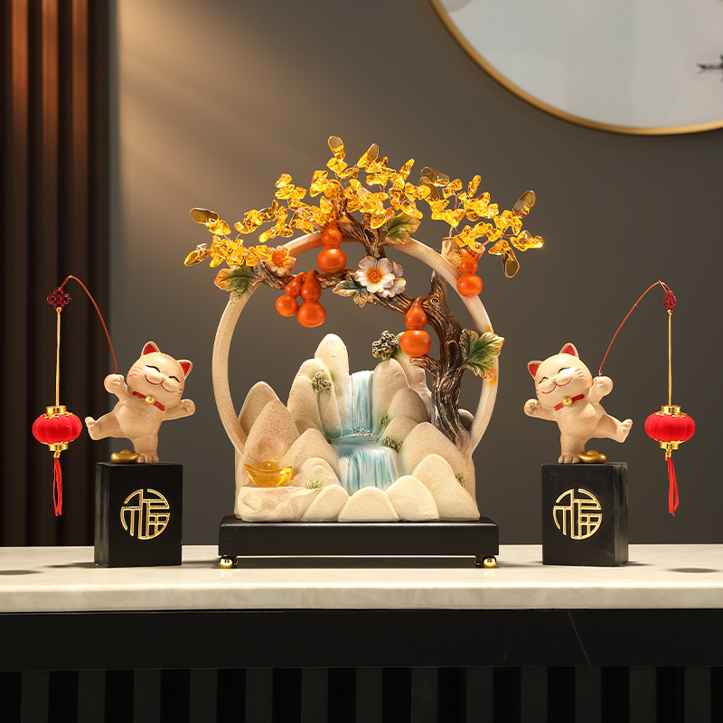 山水摆件葫芦发财树m轻奢高档中式客厅入门玄关电视柜办公室桌装