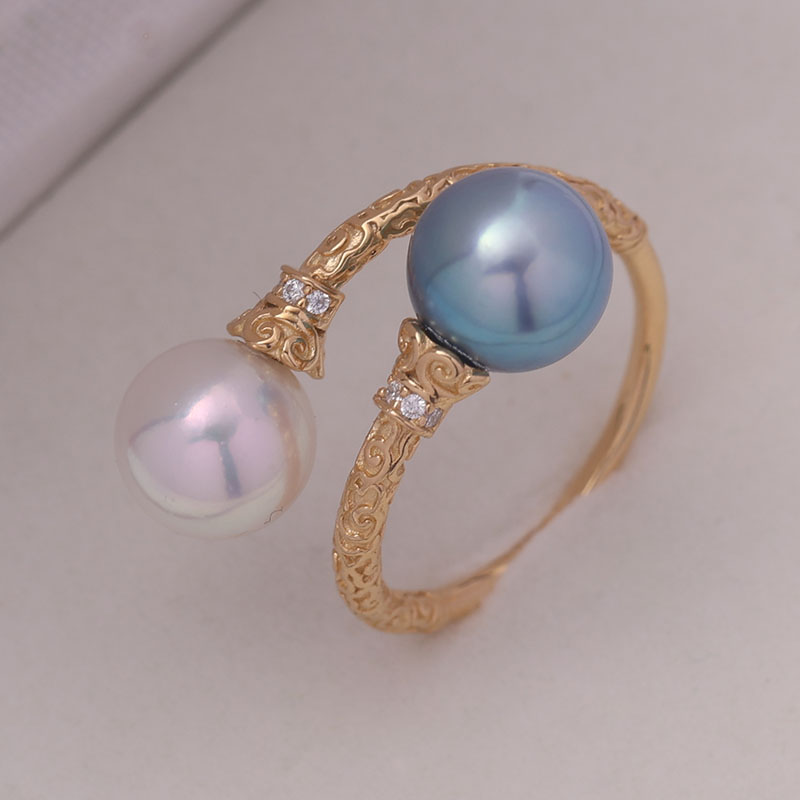 DIY珍珠配件S925纯银k金工艺时尚双珠戒指托指环调节戒托空托配饰
