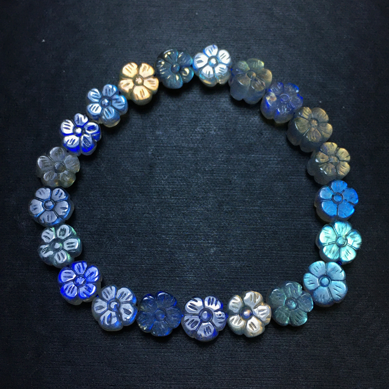 天然冰种拉长石雕刻花手链灰月光彩光蓝光月光石灰体水晶手串男女