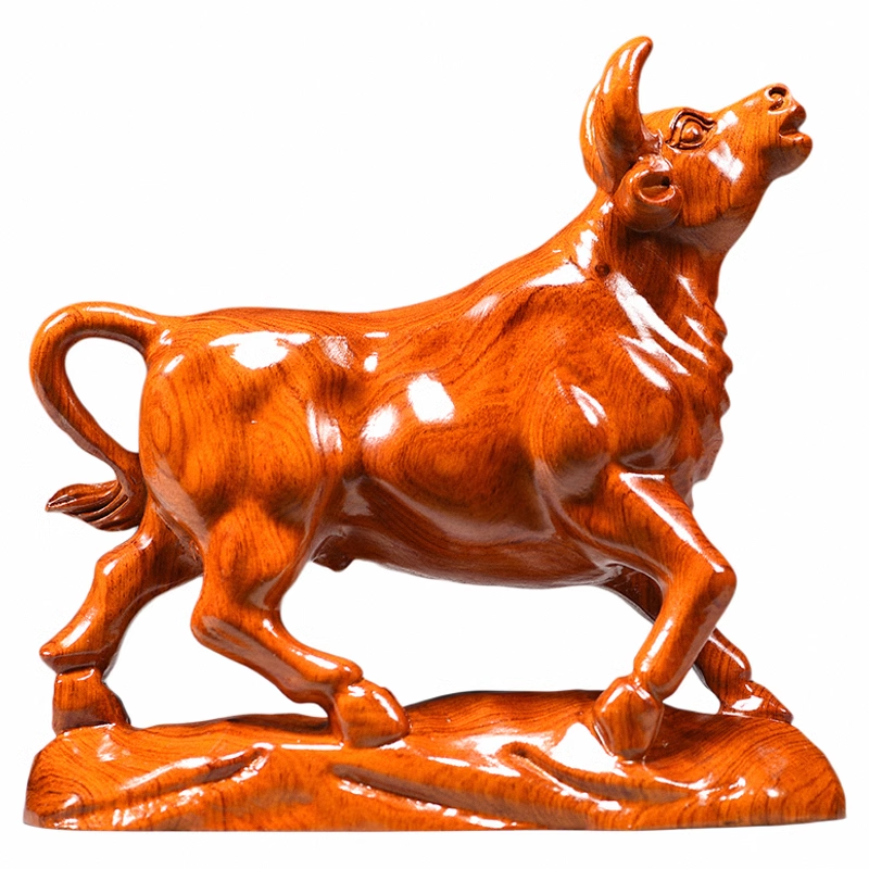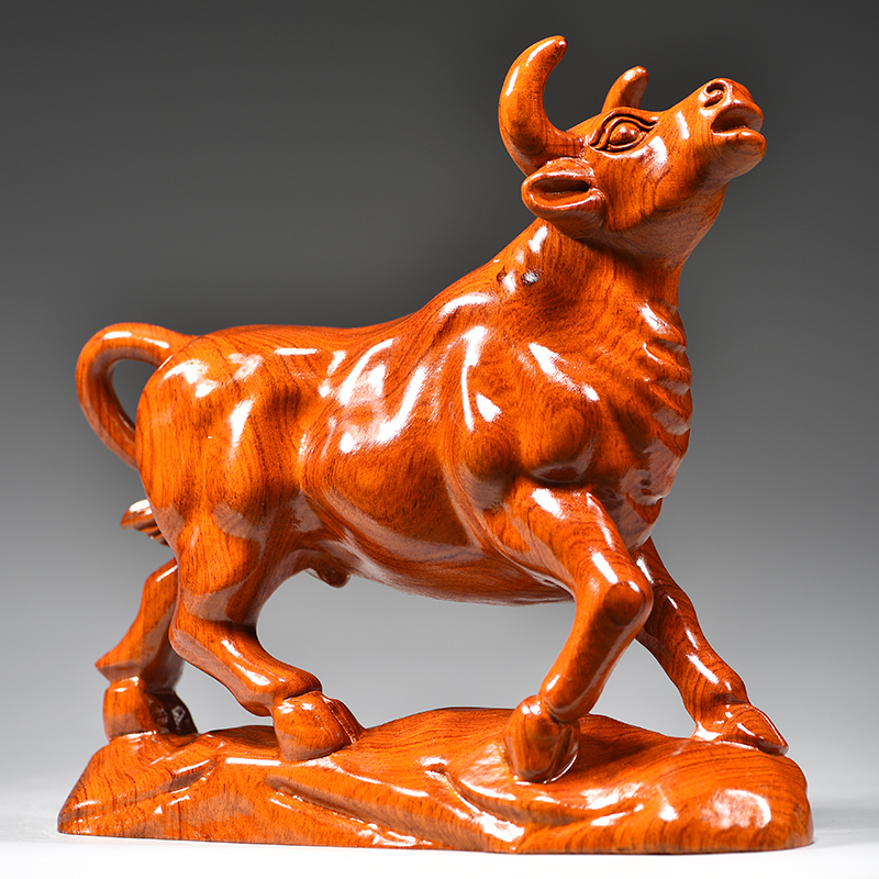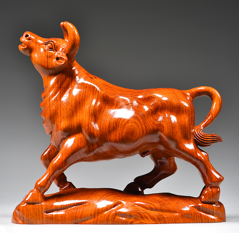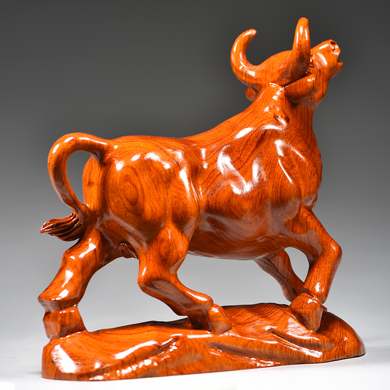 花梨实木牛气冲天摆件木质雕刻十二生肖木头吉祥物装饰木制工艺品