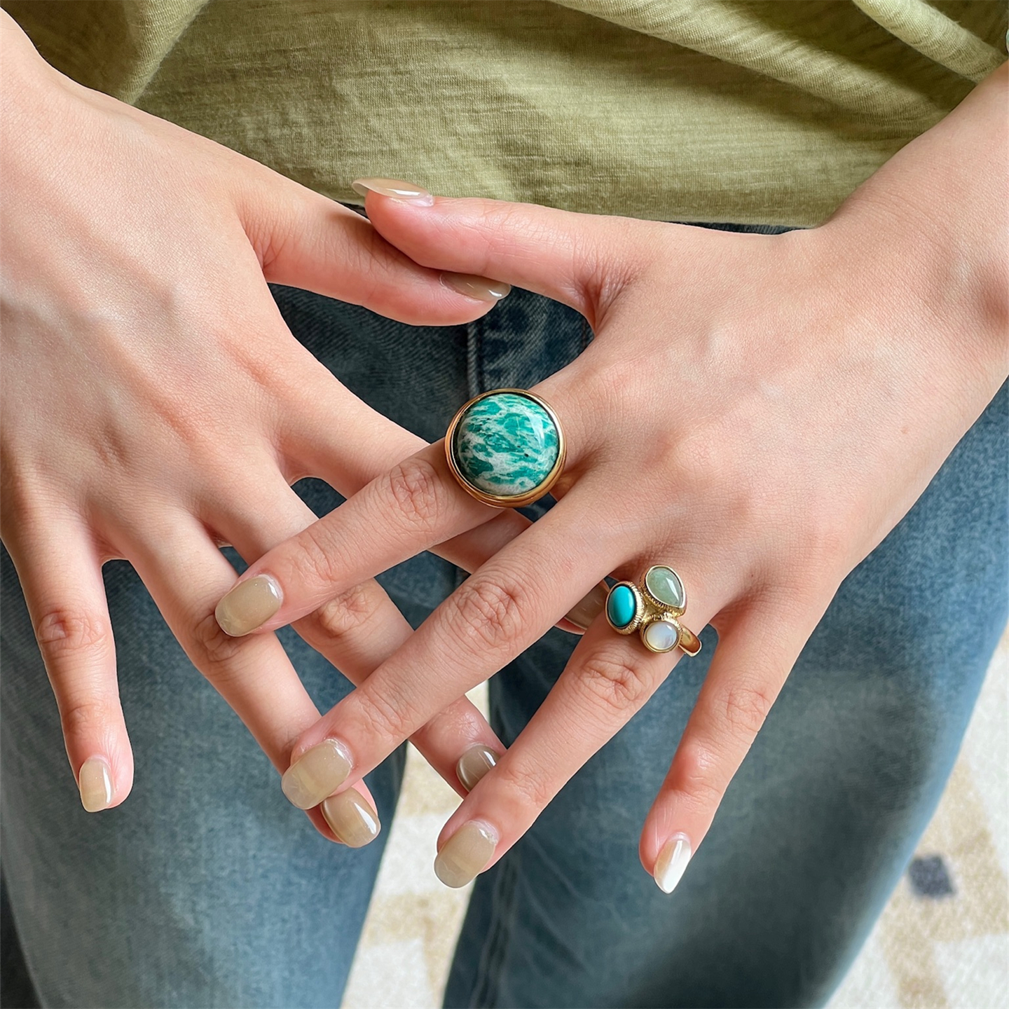 HELENE PRIME 戒指天然石镶嵌食指戒指环法国小众设计师手工制作