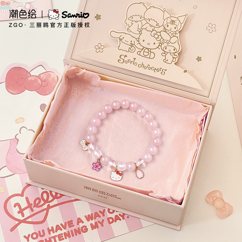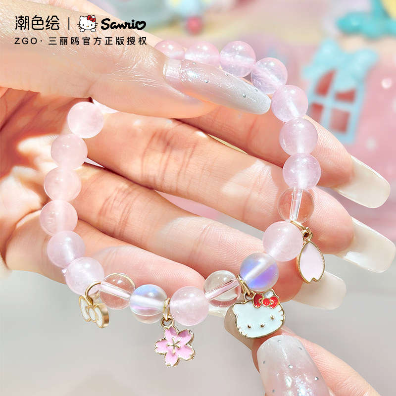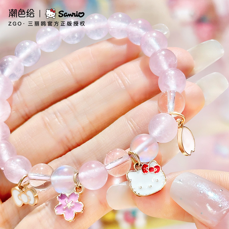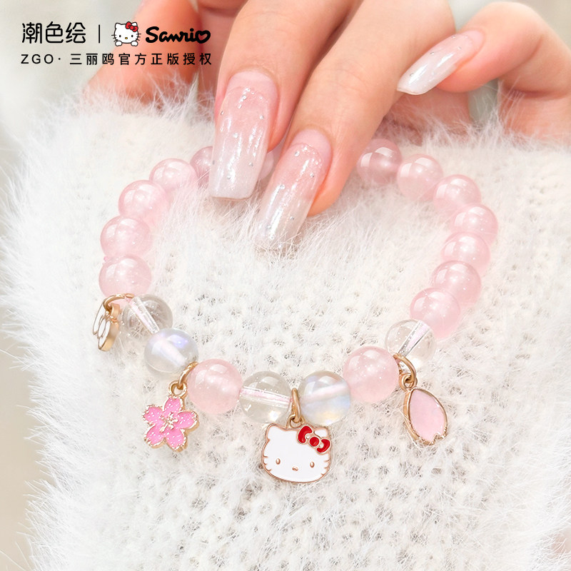 三丽鸥正版HelloKitty水晶手链女生串珠2025新款儿童手串生日礼物