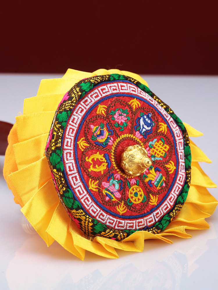 手摇转轮伞盖防尘罩套藏式转桶筒家用遮尘布套蓝色黄色八吉祥宝轮