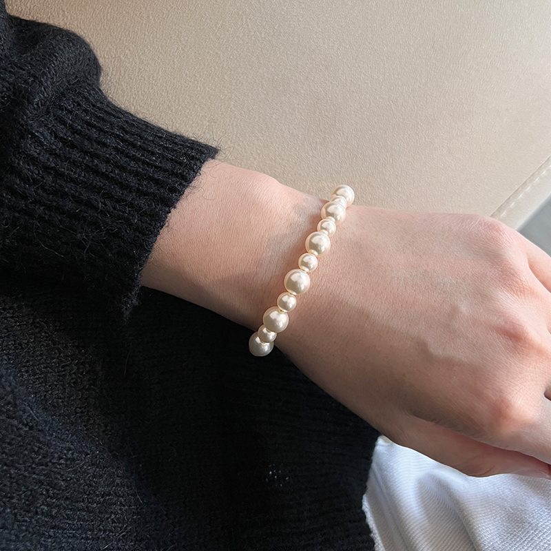 施家澳白色正圆强光珍珠手链女轻奢小众高级感元宝扣设计手饰配饰