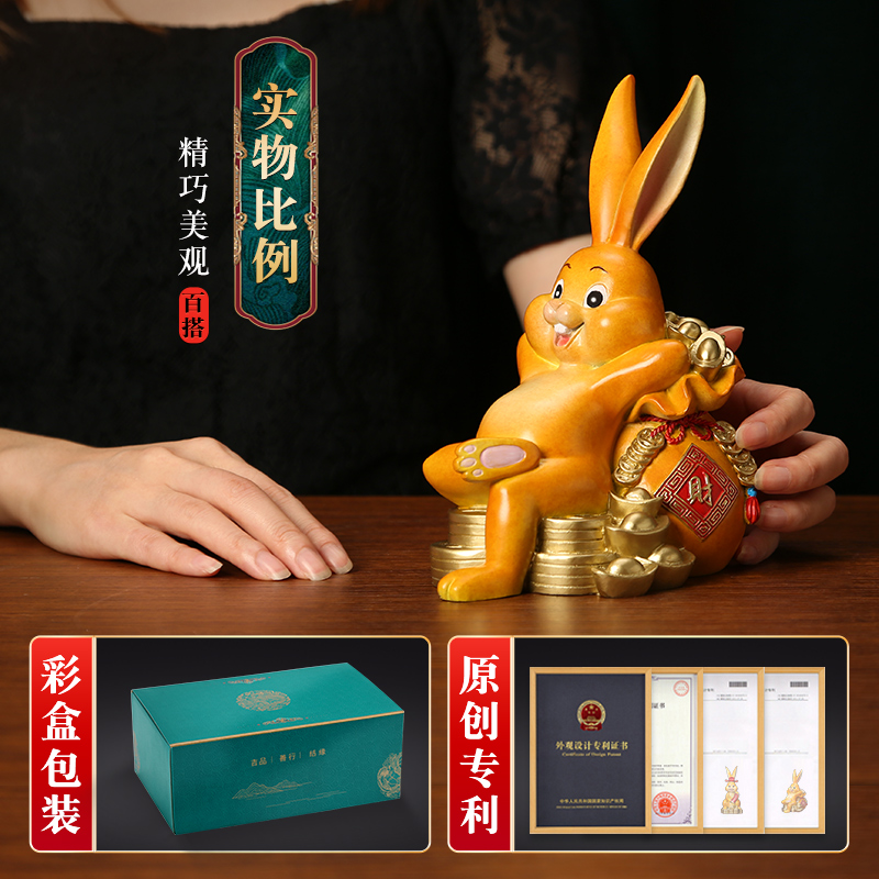 上善若水《坐拥财富》生肖兔摆件 铜兔子办公室桌面装饰品0951