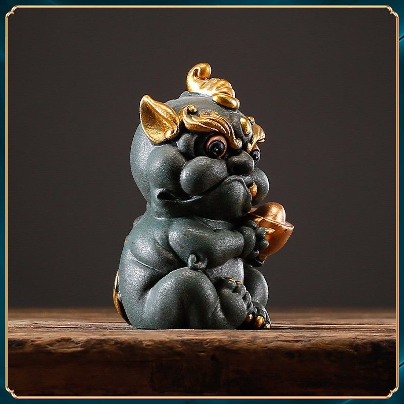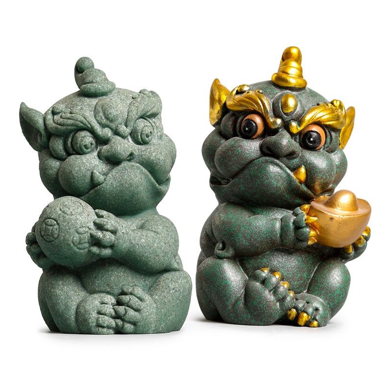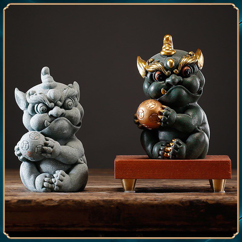 碌心 青砂石貔貅持宝抱球 国潮摆件逗兽记 鱼缸造景桌面摆件装饰