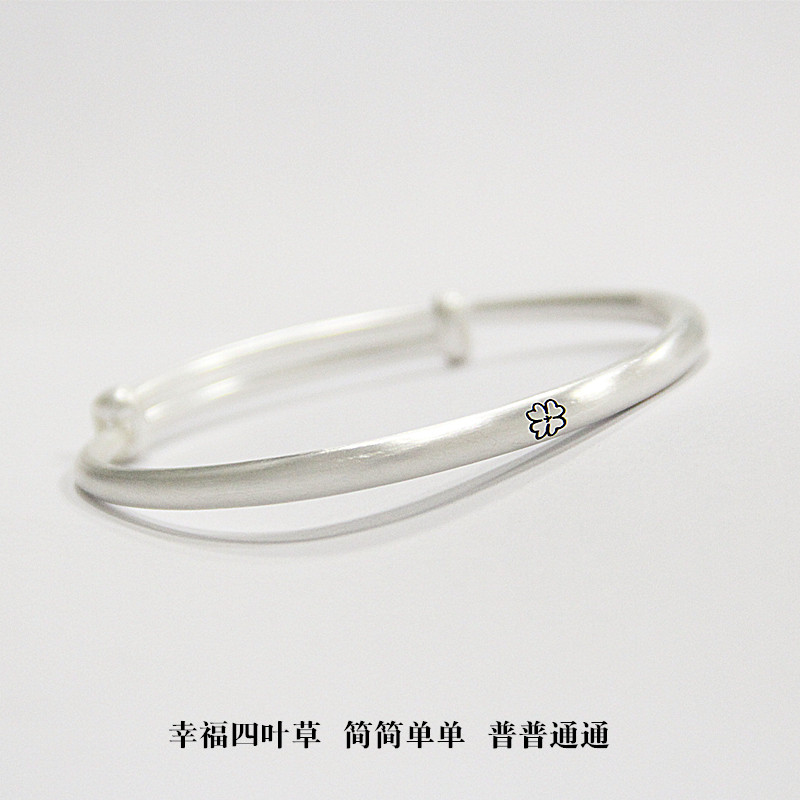 熊老三999纯银手镯女四叶草足银手镯幸运刻字手工古法银手饰送礼