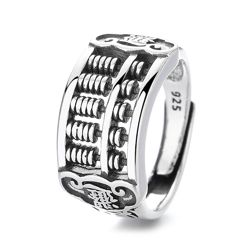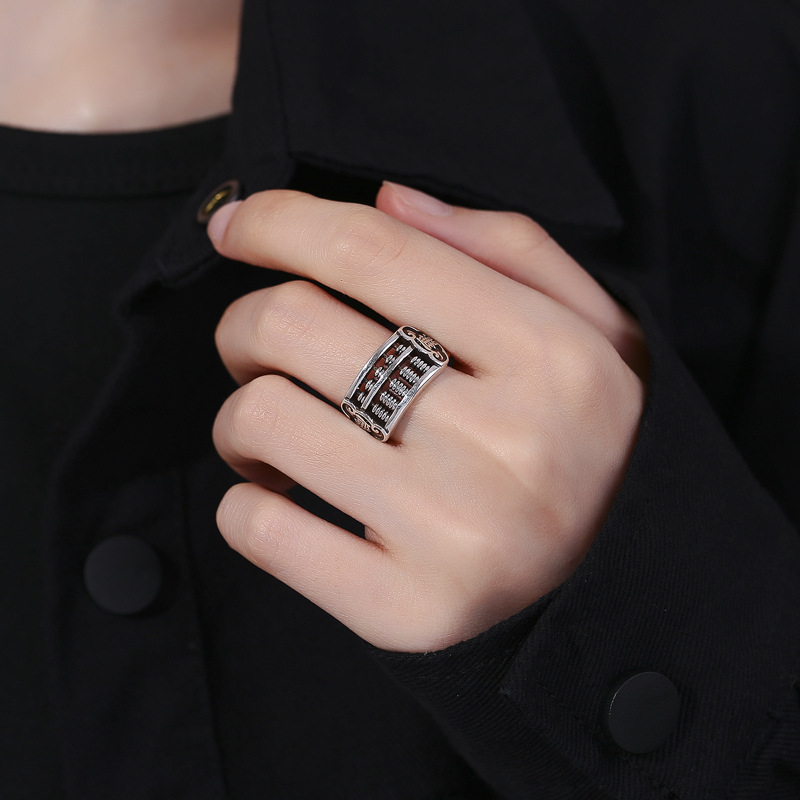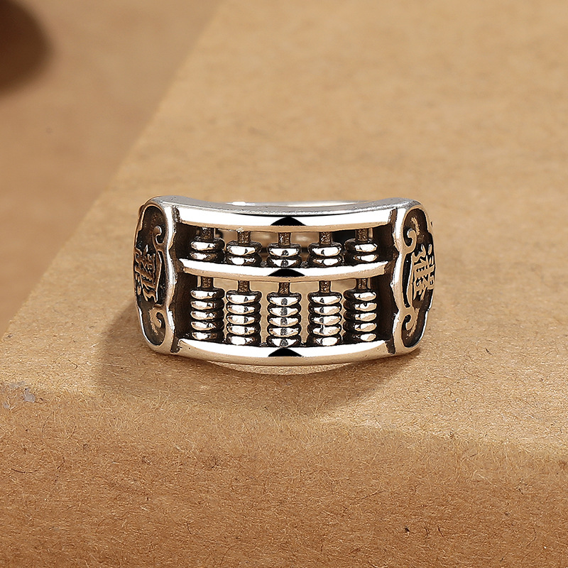 复古银色民族风做旧工艺算盘戒指个性简约小设计感铜钱创意手饰品
