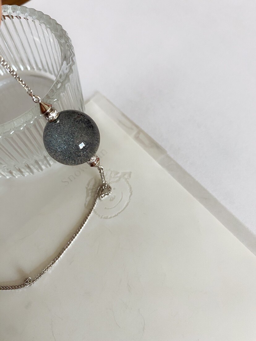 18K金千层蓝色金沙水晶魔法球路路通项链