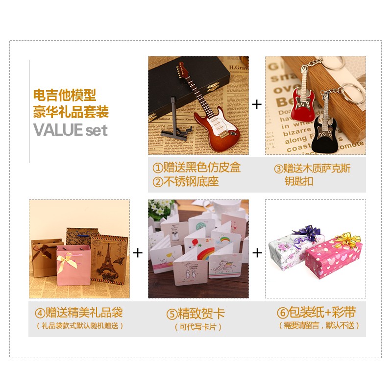 可刻字手工木质电吉他模型乐器摆件汽车挂件送男女朋友电吉他胸针