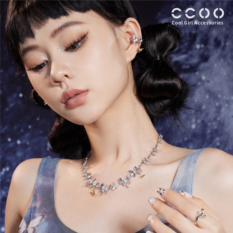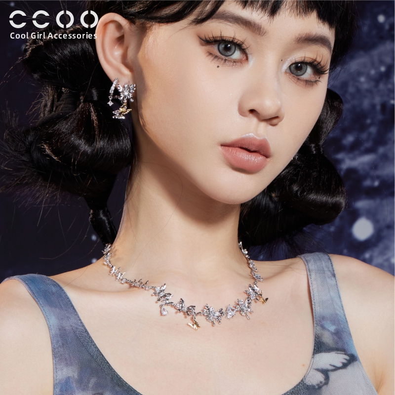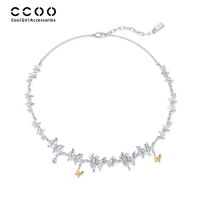 CC&OO原创设计双色蝴蝶项链女夏天轻奢小众2025新款锁骨链配饰品