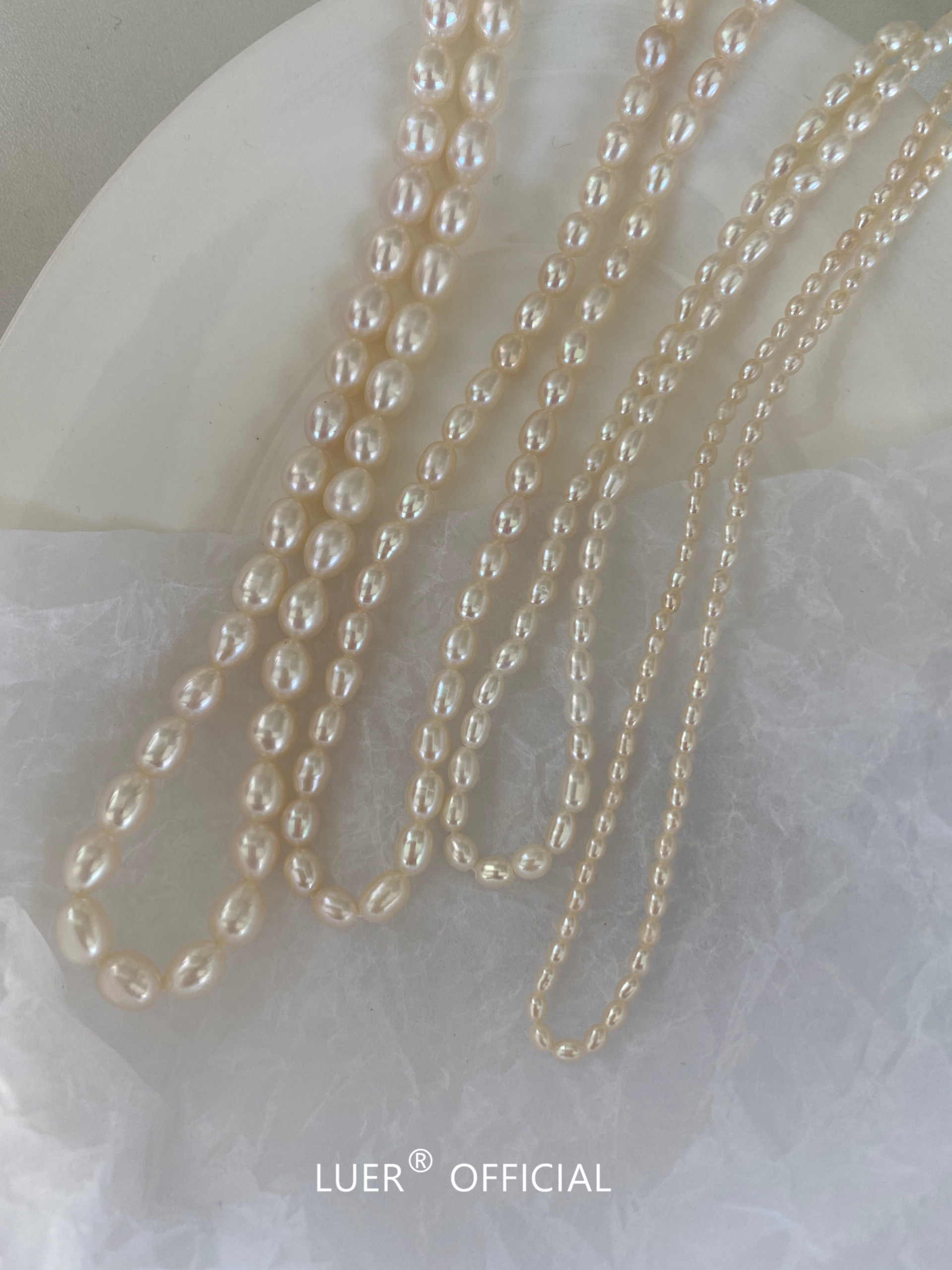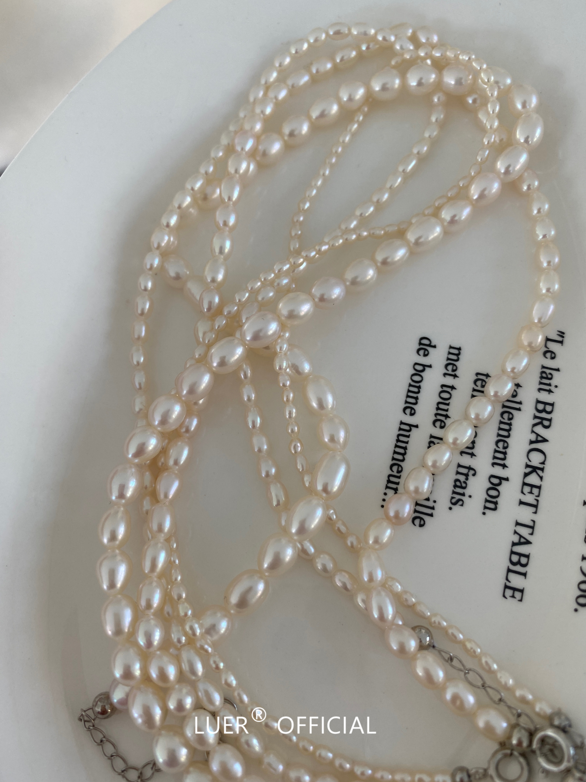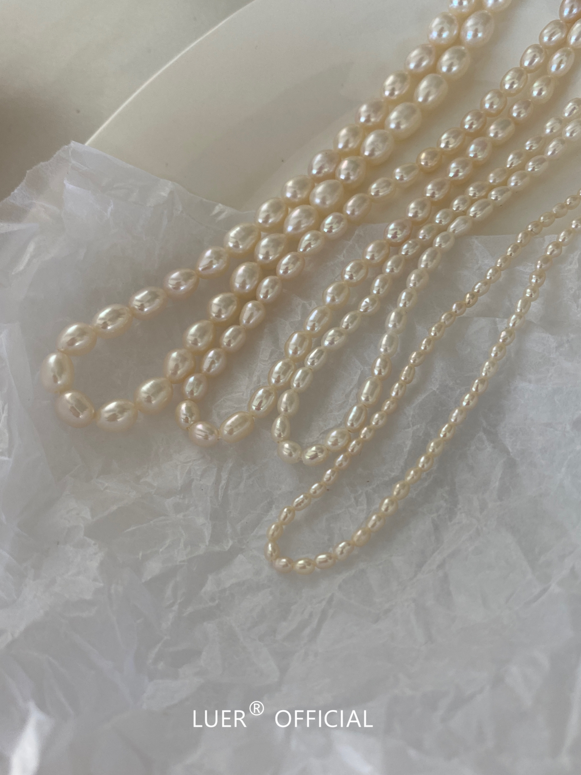 LUER高品质稀有镜面强光天然小米珍珠简约气质纯银锁骨链项链超细