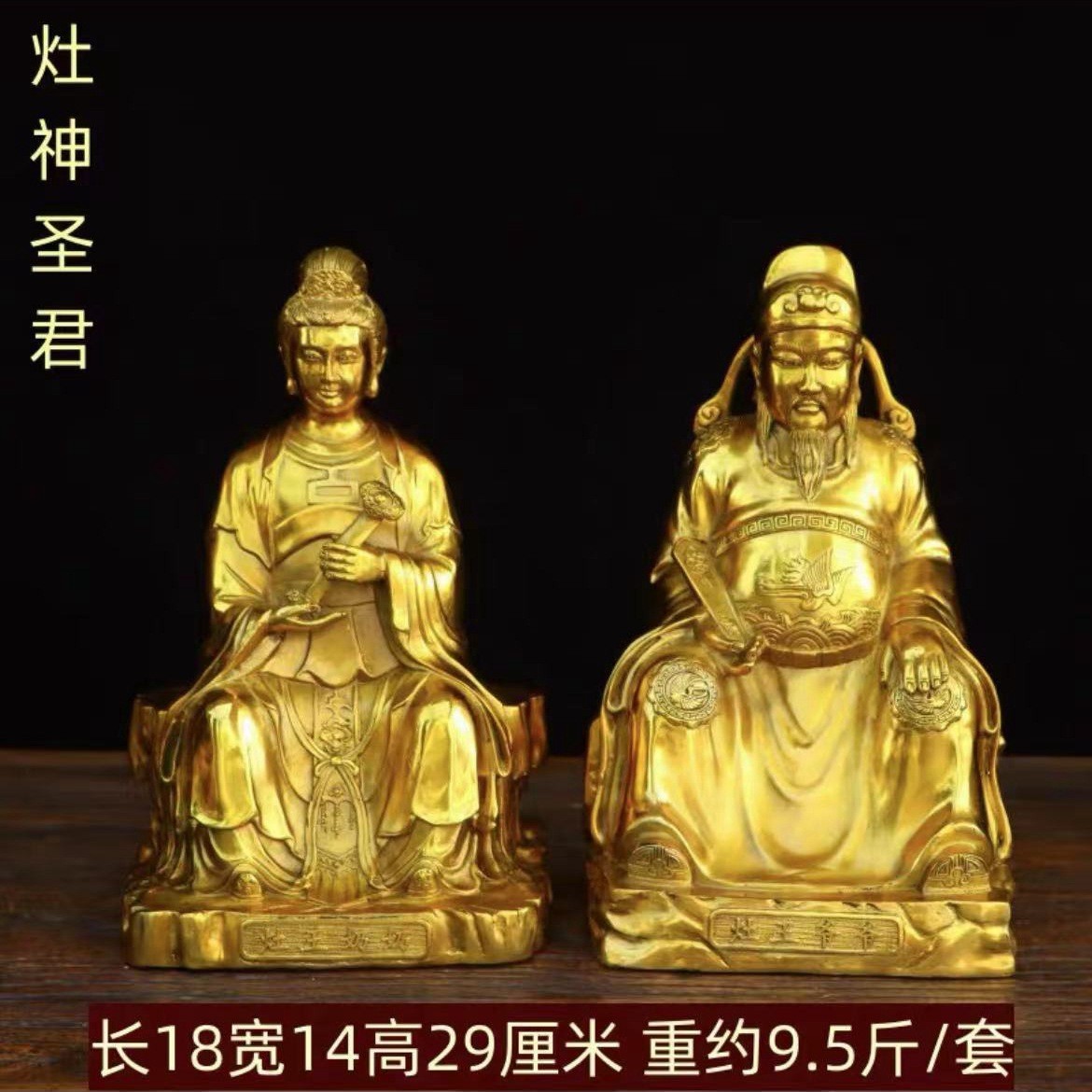 黄铜灶王爷爷灶王奶奶灶神厨房神像家用后圣君饭店酒店吉祥铜摆件