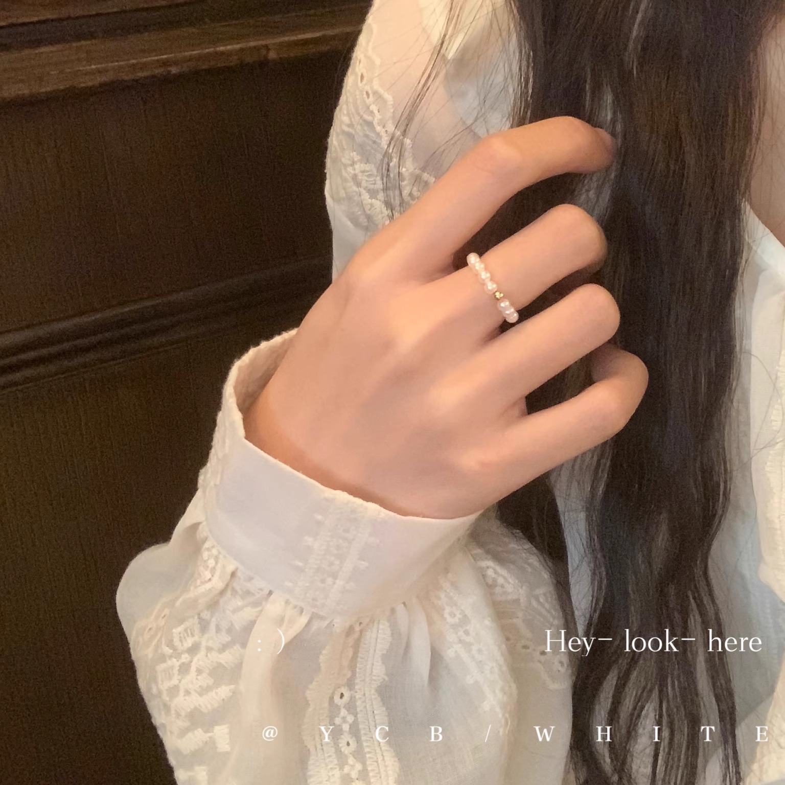 「爱丽丝」轻奢气质百搭珍珠戒指小众设计感温柔食指尾戒素圈指环