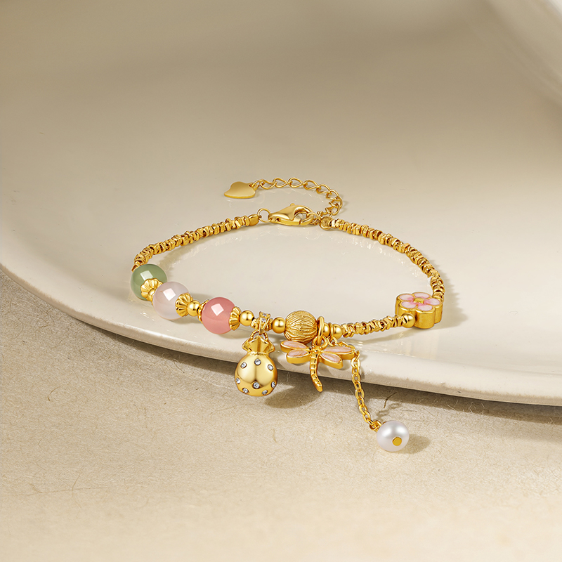 周六福玛瑙中国风手串黄金色手链S925银手饰百搭送女友圣诞礼物