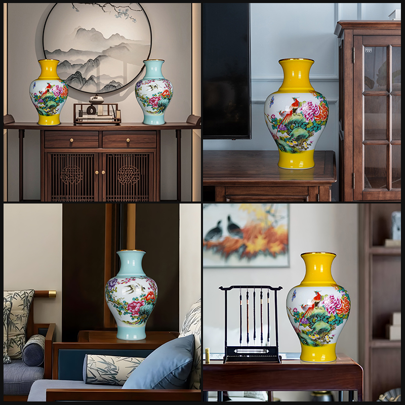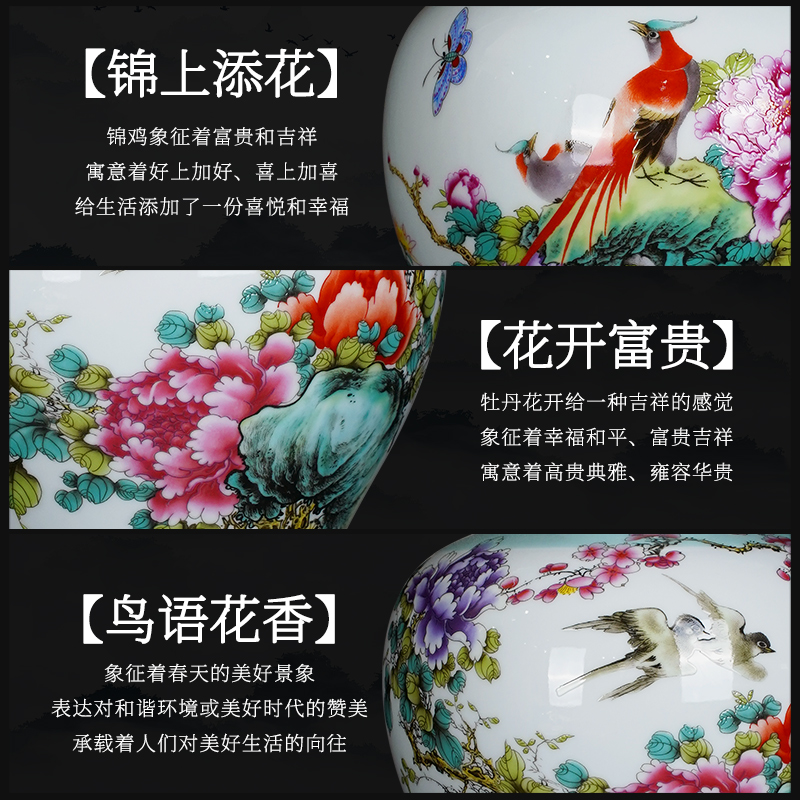 景德镇陶瓷器新中式手工粉彩花开富贵摆件家居装饰客厅玄关工艺品