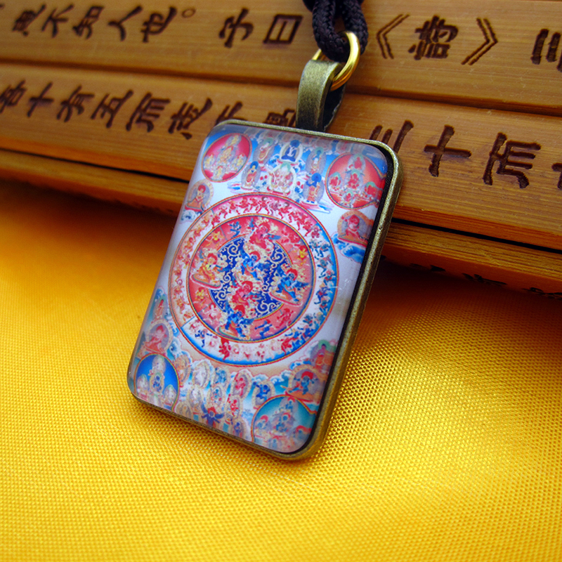 YC2379新款精品邬金佛陀莲师坛城小唐卡佛牌吊坠藏地法会结缘挂件