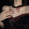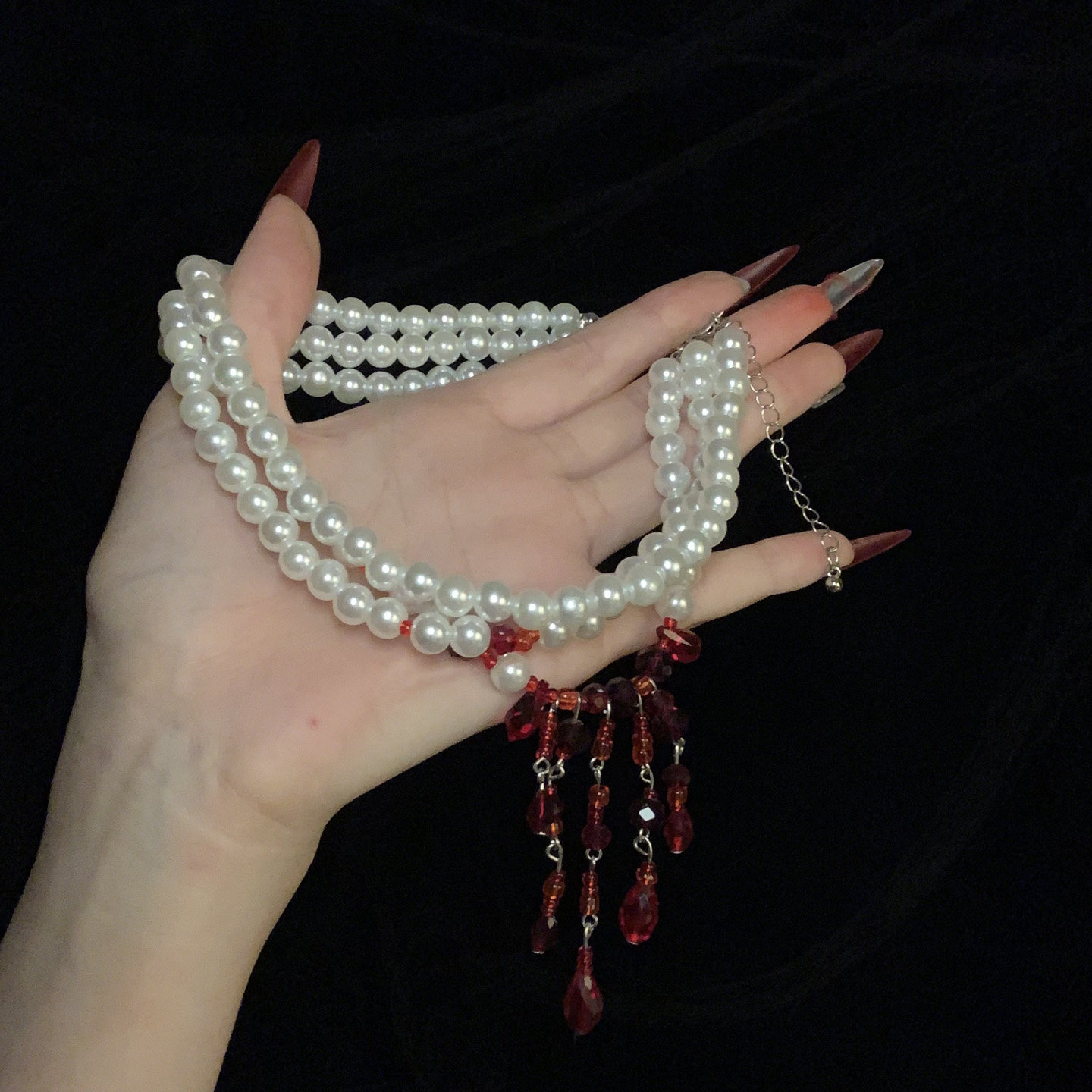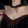 万圣节哥特风红色血滴仿珍珠项链女吸血鬼暗黑项圈个性夸张choker