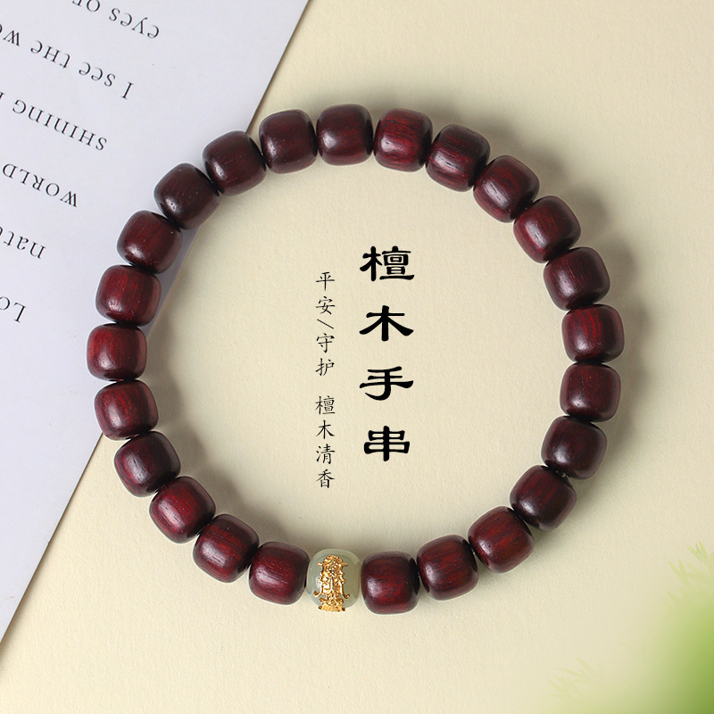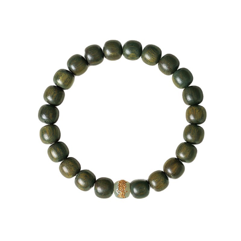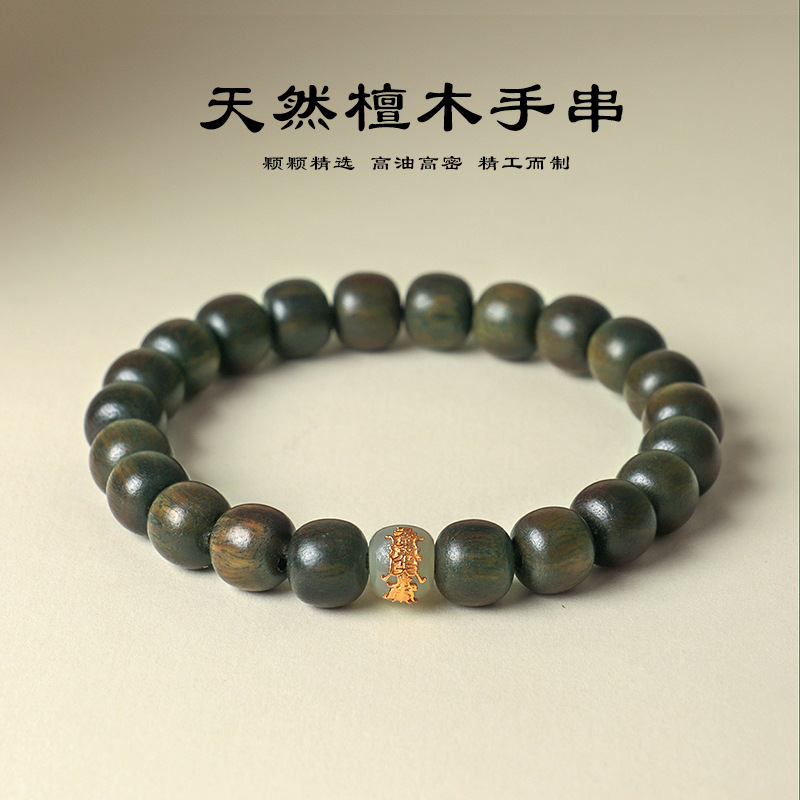 925银吉祥图腾天然绿檀木串珠手链男女款文艺复古和田玉手串