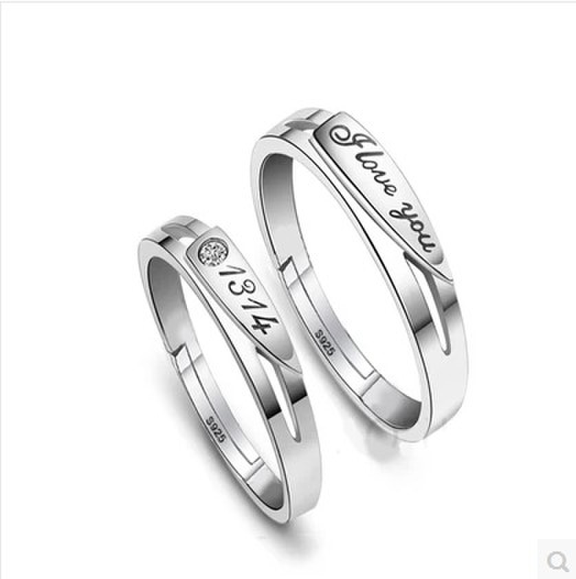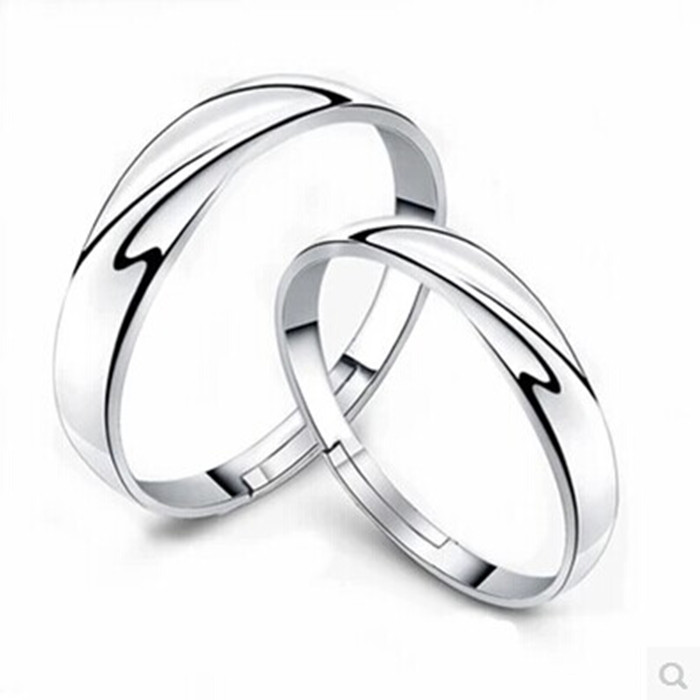正品925纯银开口 情侣戒指男士女活口对戒韩版创意情侣结婚钻戒子